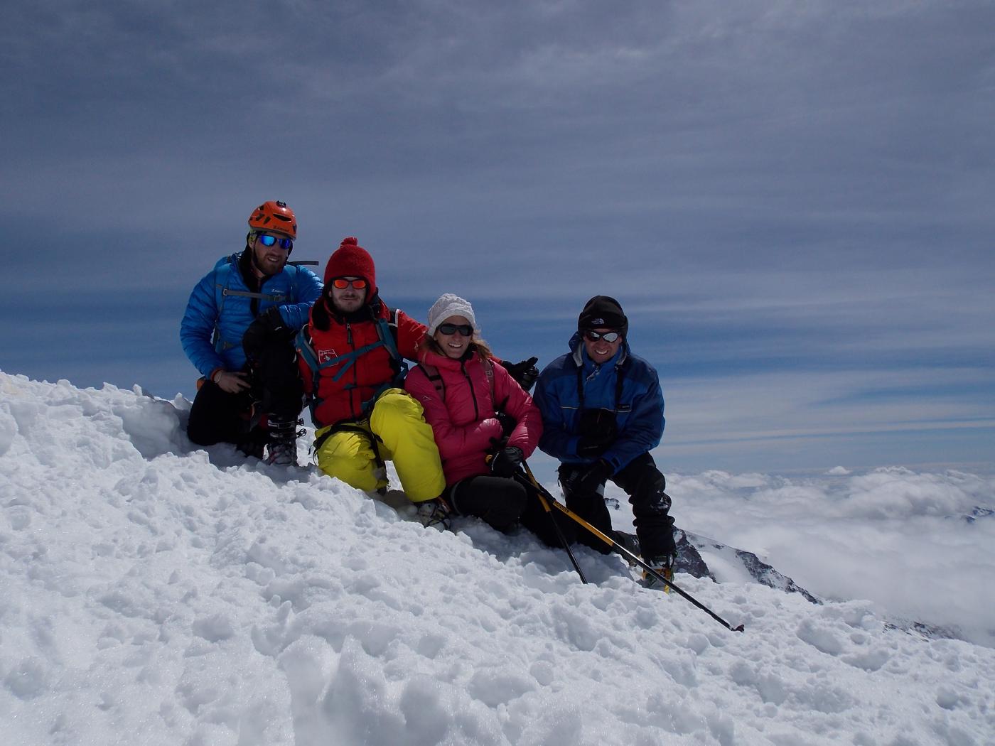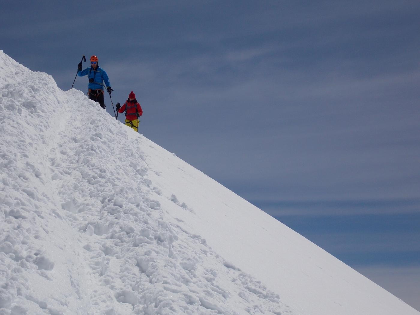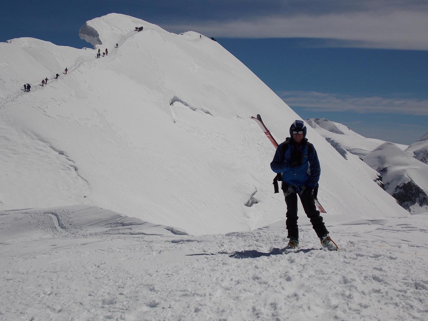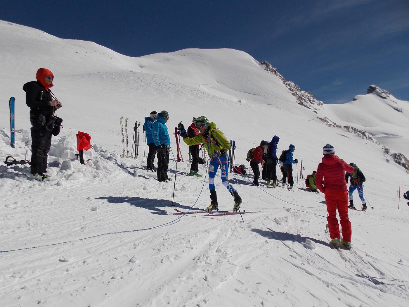 Saliti per il Trofeo Mezzalama, partiti con gli sci da Plateau Rosa abbiamo raggiunto il colle del Breithorn dove abbiamo visto passare le prime squadre in gara. Da qui saliti fino alla sella tra i Breithorn Occidentale e centrale dove abbiamo lasciato gli sci per salire con i ramponi al Breithorn Centrale. In discesa bella neve fino al colle del Teoudulo, da qui in giù neve sempre più marcia fino a Cervinia.