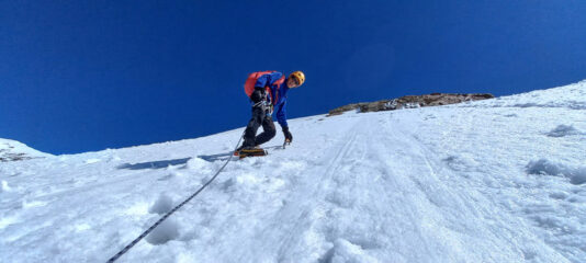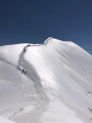 Condizioni perfette per la salita, niente ghiaccio e traccia dei giorni scorsi molto evidente. Salito con Audrey molto felice di avere fatto questa via sul Breithorn. Continuato poi la traversata per cresta, tantissima gente in giro