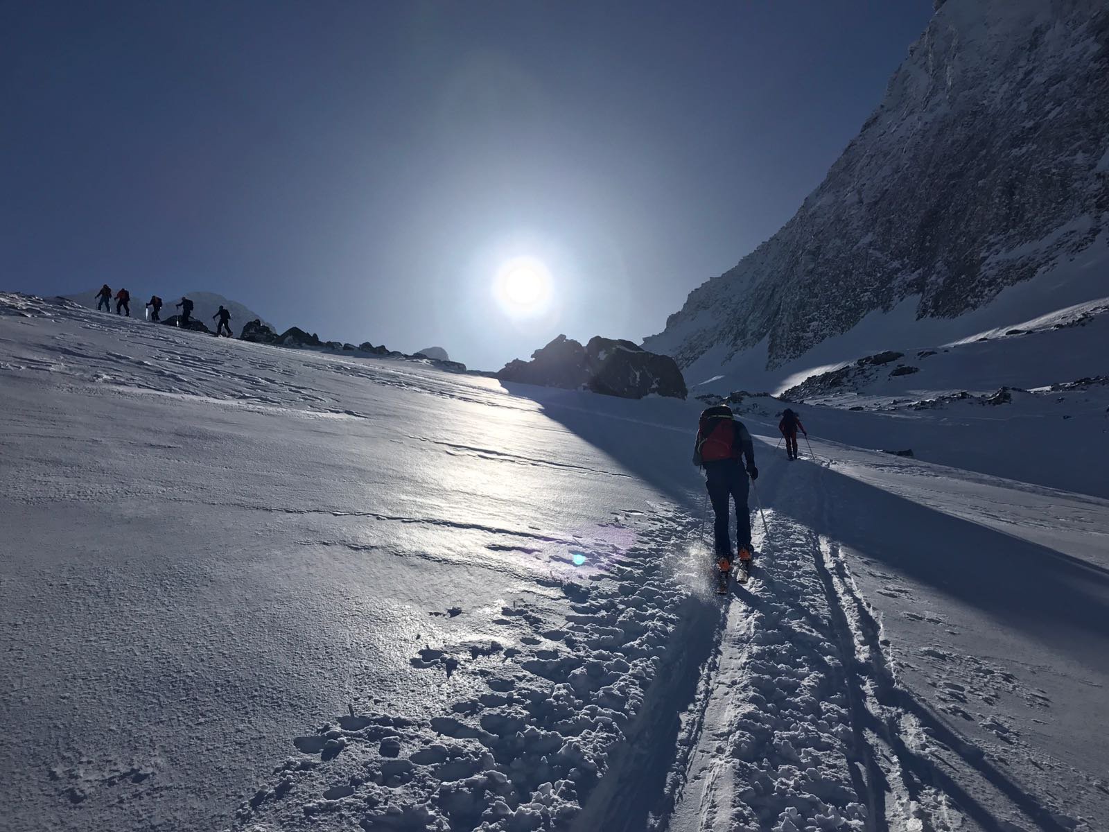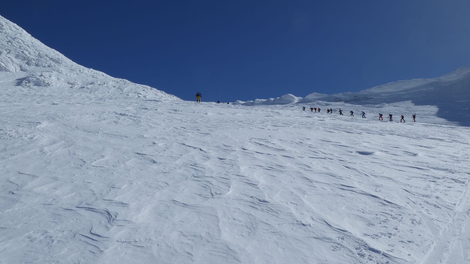 Deviare ad Est e risalire il ghiacciaio fino alla sella del Breithorn. Dal colle vs sud rimontare l’ ampia dorsale che conduce in vetta.