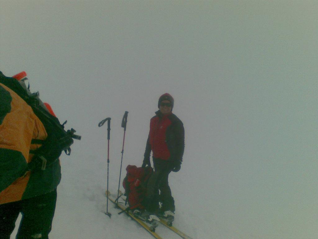 Siamo andati al passo del sempione stamattina per andare allo Schilthorn, ma.. c’erano i militari che facevano esercitazioni di tiro in quella zona, quindi a qualcuno di noi è balenata l’idea di salire al Breithorn con un dislivello di circa 1440 m e scendere nel vallone di homatta fino dopo Egga con un dislivello di 1823 m fino alla quota 1613. Dato che Domenica siamo già saliti e scesi dal Breithorn per la via di salita, così siamo partiti alle 8.44 dall’ospizio con il sole ed una temperatura di +0.5 su neve portante fino al traverso come Domenica solo che a differenza di Domenica dopo quota 3000 m erano presenti banchi nuvolosi sempre più fitti. In parole povere abbiamo trovato la neve leggermente più dura di Domenica e nebbia a banchi da 3200 m in su, siamo comunque arrivati in vetta alle 12.40 con la pia illusione che si sarebbe potuto schiarire. Poi abbiamo iniziato la discesa intorno alle 13 con polvere fino al colle del Breithorn e con leggera crosta fino a quota 3200 in una leggera nebbia a banchi, dopo tale quota abbiamo individuato con certezza il passo di Homatta ed abbiamo iniziato la discesa nel suddetto vallone inizialmente su neve dura portante e poi via via su Firn sempre più morbido per arrivare fino sulla statale sotto l’alpeggio di Homatta con neve marcia ma sciabilissima anche grazie al tempo nuvoloso che ci ha accompagnato per tutta la discesa.
