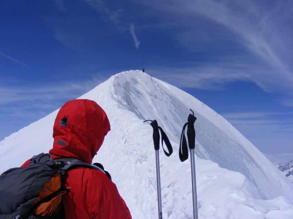 Saliti in giornata da Cervinia, sci ai piedi dal parcheggio, cielo blu e panorama sempre più bello salendo. Arrivati al rif guide cominciato vento a raffiche molto fastidioso che ci accompagnerà fino in vetta. Sotto la pala siamo saliti al colletto di dx con ramponi ai piedi gli ultimi 50 m. x ghiaccio insidioso nascosto da un fine strato di neve, poi in cresta fino alla vetta, fantastico! Ma il bello viene adesso…supersciata fino alla macchina con neve praticamente mai mai brutta sfruttato tutti i fuori pista possibili anche nella parte bassa ..orgasmo….la migliore dell’anno sicuramente…forse di sempre….andate un pò a vedere!!!!