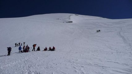 Ottima gita considerando la data, a 300 mt di dislivello conviene togliere gli sci e proseguire con ramponi. Scendendo la prima parte e’ bella dura poi un breve tratto di crosta sciabile e da plateau in giu’ firm da favola, con due togli e metti si raggiunge cime bianche.(merita ancora)