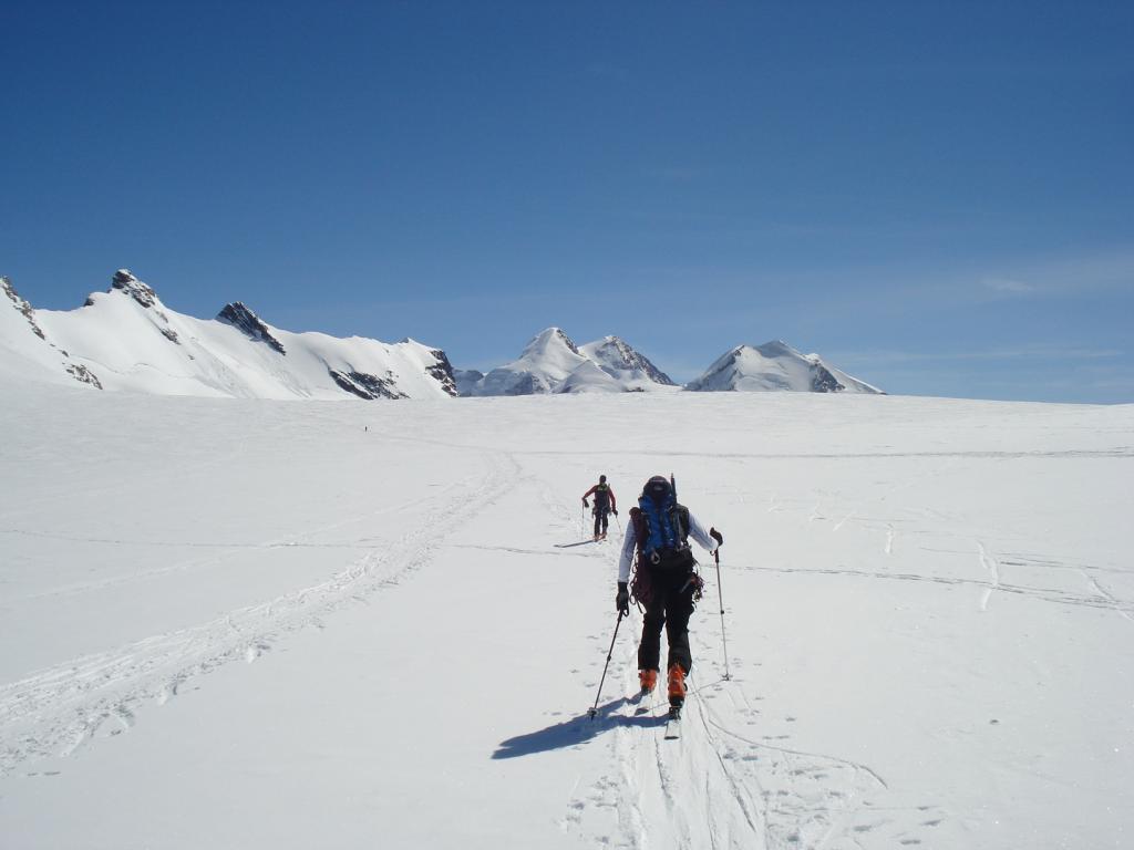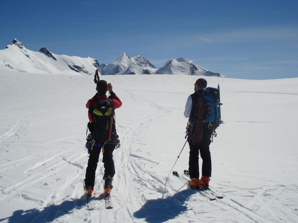 Gita spettacolare, tutto perfetto: meteo, traccia di salita e discesa. Partiti da Plateau Rosa dopo una discesa di ambientamento alla quota, abbiamo seguito l’itinerario classico che attraversa gli impianti del Piccolo Cervino, seguendo sempre l’evidente traccia fino al colle e poi lungo i ripidi pendii che conducono alla vetta. Nessuno crepaccio aperto è visibile lungo il percorso di salita. Utili ma non indispensabili i rampant per affrontare i lunghi traversi finali. Neve mai ghiacciato anche per la giornata particolarmente calda che ci ha consentito di raggiungere quota 4.165 in maniche corte! In punta breve discesa senza sci della parete nord e risalita con picca per recuperare un bastoncino fatto cadere da uno sci alpinista…un po’ distratto! Completa assenza di vento che ha consentito di scattare bellissime foto, mangiare, bere e…patire un po’ la quota. Discesa su neve ottima dalla vetta del Breithorn fino a Cervinia: manto dapprima ben compatto ma mai gelato (occhio ad alcuni piccoli buchi aperti intorno a quota 4.000), poi trasformato ed infine primaverile sul Ventina ma sempre sciabilissimo e divertente. Ottima la compagnia di Alfonso e Tiziano. La prevista discesa della Porta Nera o Schwarzhorn, che le guide di Zermatt sconsigliavano in quanto potenzialmente pericolosa, è solo rinviata.
