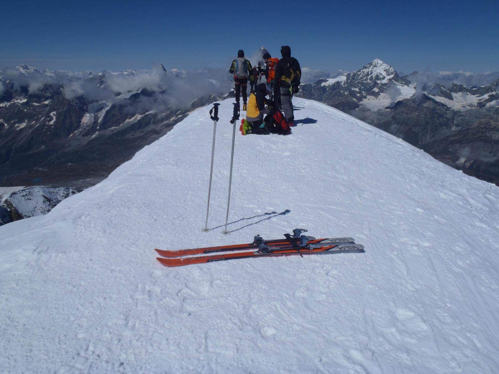 Discesa splendida invece. Giù dritto dalla cima, poi allargato a destra sotto il traccione per non disturbare chi ancora saliva.