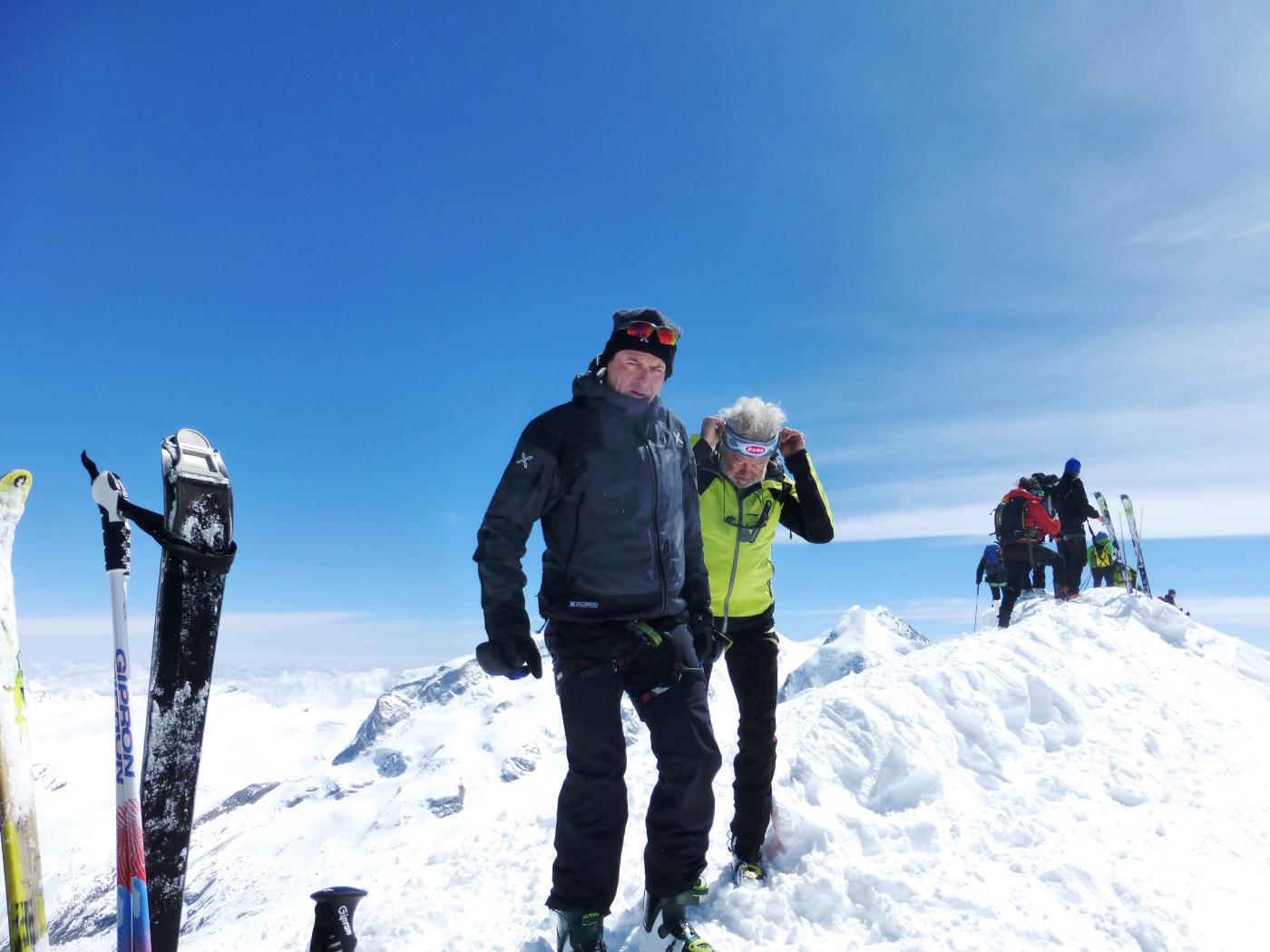 saliti per l’occasione del trofeo Mezzalama, partiti dal Plateau assenza di vento e giornata come da previsioni molto bello fino verso le 16, in cima un pò di vento ma non era per nulla freddo, bellissima discesa su neve fresca leggermente ventata e crosticina comunque ben sciabile, dalla gobba di Rollin fino a Plan Maison neve divertentissima poi da li a Cervinia neve pesante e trasformata a mo di polenta. un’altra grande giornata di scialpinismo con amici affiatati Laura Giuliano e Fortunato.