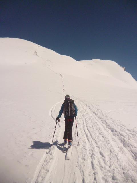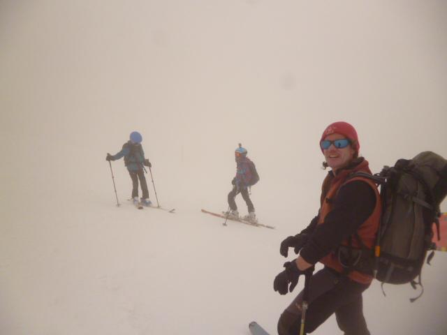 Nuvole e nebbia fino quasi all’arrivo impianti. Partiti in gruppo che purtroppo si è sfilacciato x problemi vari (quota, pelli); proseguiamo in due ma un po lenti, le nuvole avanzano e a 100 mt dalla vetta un segnale di mal di montagna si fa sentire sul più piccolo; decidiamo di non insistere nonostante le voci e gli sci “in verticale” delle persone in vetta fossero ben udibili/visibili, ma serve energia per la discesa; ottima la discesa dal pendio fino al ghiacciaio; peccato per le nuvole ormai risalite che rovinano la discesa su plato’ rosà (per questo le 3 stelle); nebbia quasi fino a Cervinia, poi 150 mt di dislivello a piedi per raggiungere il parcheggio