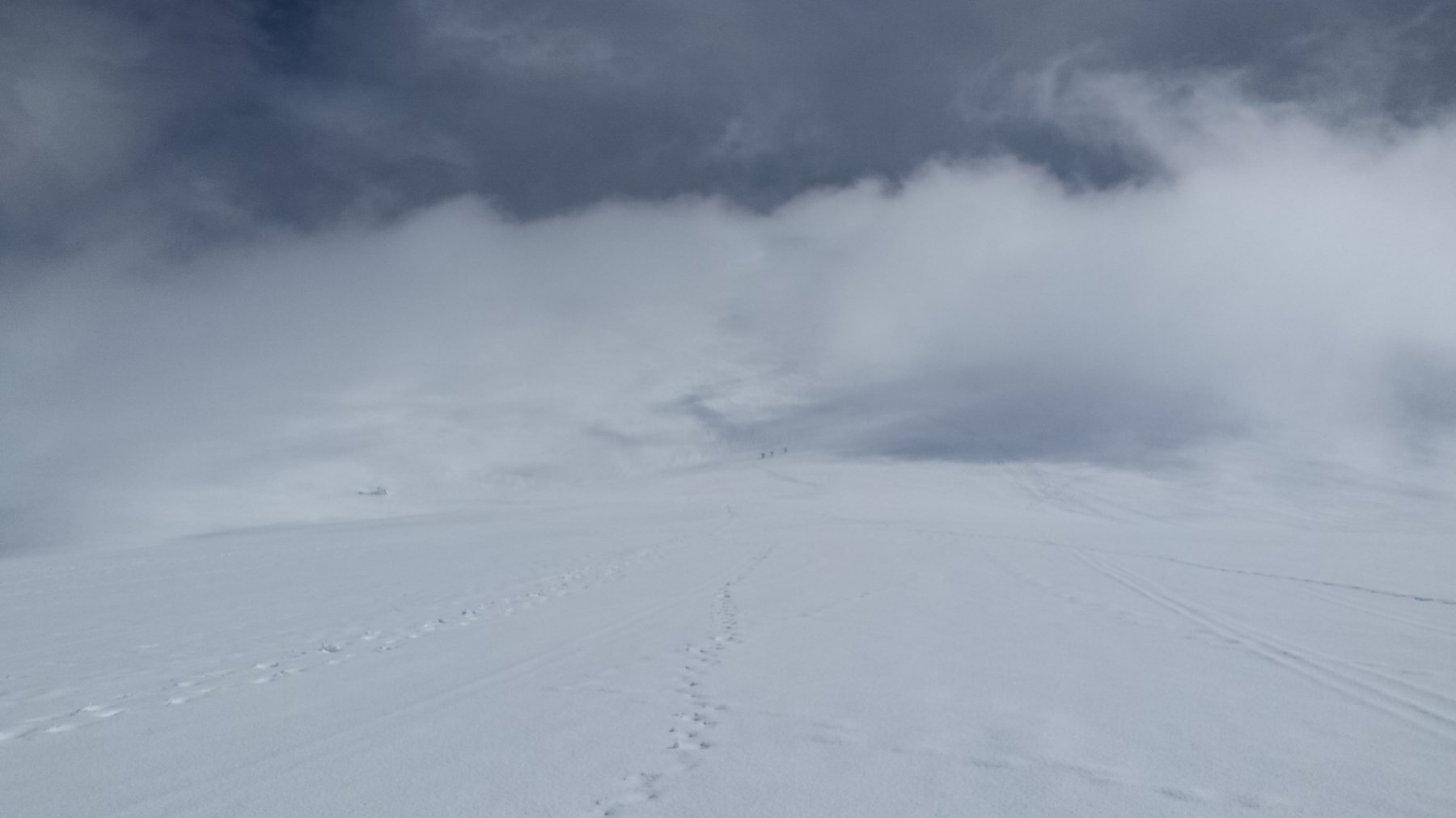 Ho preso un po’ di pioggia in partenza e poco prima di rientrare all’auto. Il temporale tuonante era sopra la Roisetta. Gli impianti Italiani sono aperti, ma la prima benna l’ho vista partire tardi (io ero già a Plateau). Con gli sci si scende ancora un 150 mt di dsl sotto Cime Bianche. Il ghiacciaio è liscissimo con due dita di polistirolo/grandine molto bello da sciare. Era da un po’ che non vedevo il Breithorn così ben innevato e bianco. Chi saliva a piedi sprofondava di 5-10 cm.