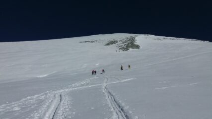 Sci in spalla fino a 2450, quindi poco sotto il lago Goillet, poi neve continua.