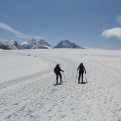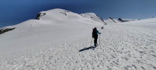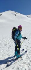 Ottima traccia in salita, sciato dalla vetta alla funivia. Neve buona, un po’ pesante sulle piste per l’ora tarda. Divertente. Elisa, Giovanni D., Giovanni C.