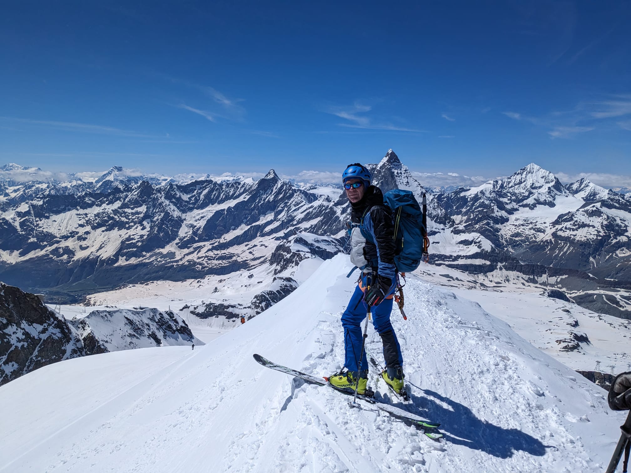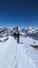 Breithorn in super condizioni, nessun crepaccio e non si vede neanche la terminale. Scesi direttamente dalla cima su neve da urlo, poi dalle piste del Klein Matterhorn già chiuse e fresate. Libidine!