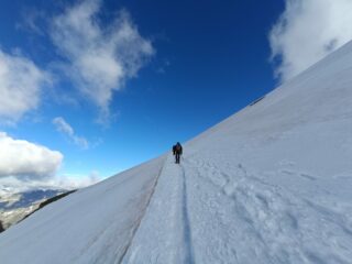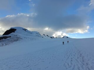 Parcheggio comodo agli impianti di risalita (che costano una fucilata: 55€ andata/ritorno). Dormito al Guide del Cervino, dove ci siamo trovati molto bene ed abbiamo mangiato altrettanto bene sia a colazione che a cena! Partiti alle 5.20 dal rifugio in condizioni meteo non favorevoli, all’attacco del ghiacciaio dopo le piste da sci una finestra di bel tempo ci ha permesso di salire il solo occidentale e scendere in tempo, prima che le nuvole tornassero. Tanto vento in cima, ma panorama eccezionale. Ghiacciaio con neve molto molle dalle ore 10.00.