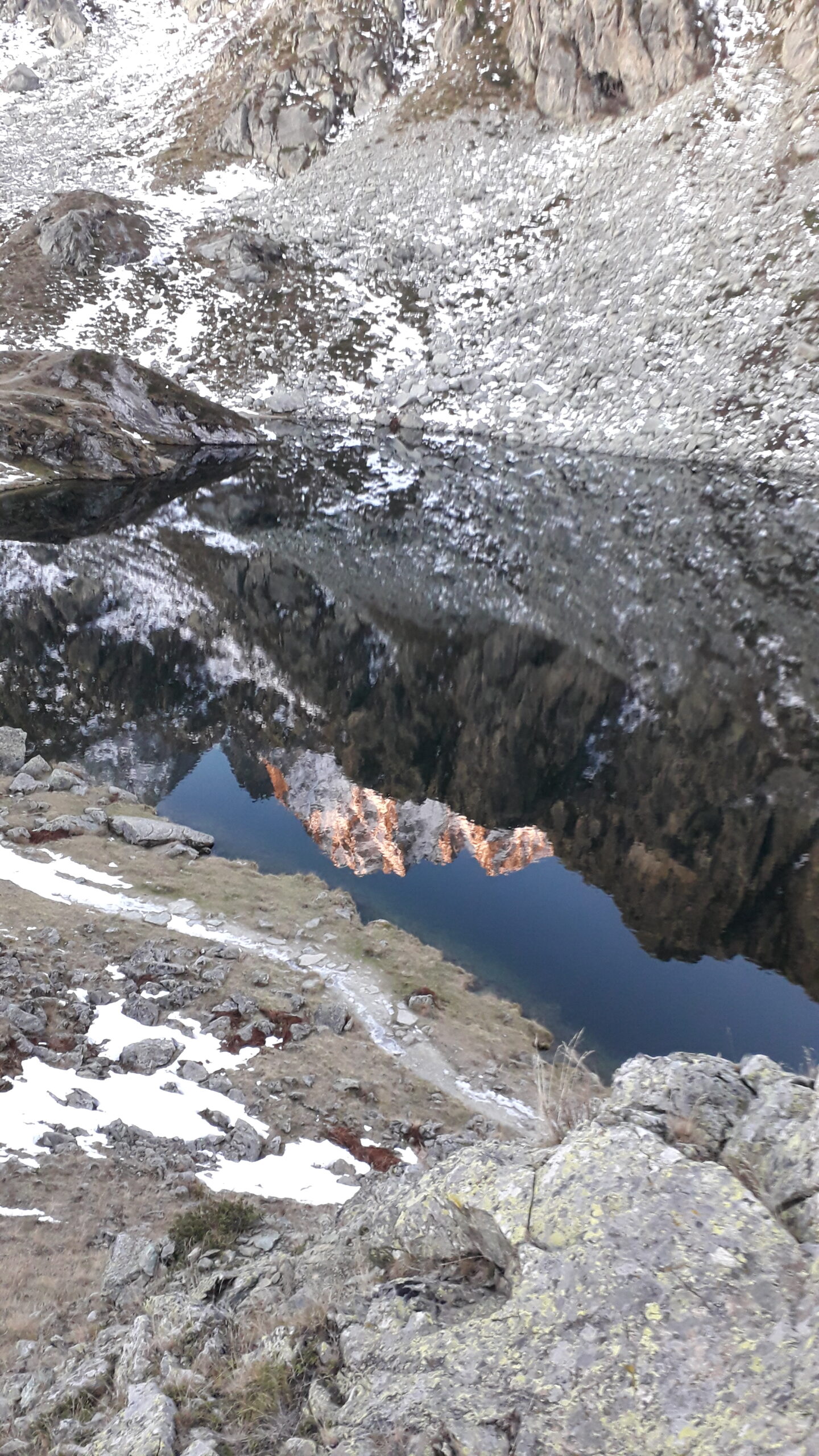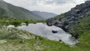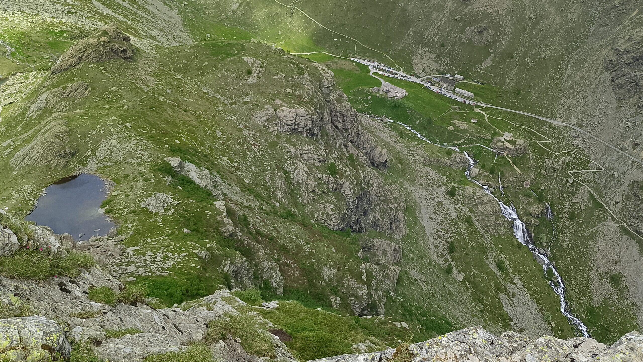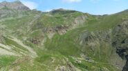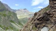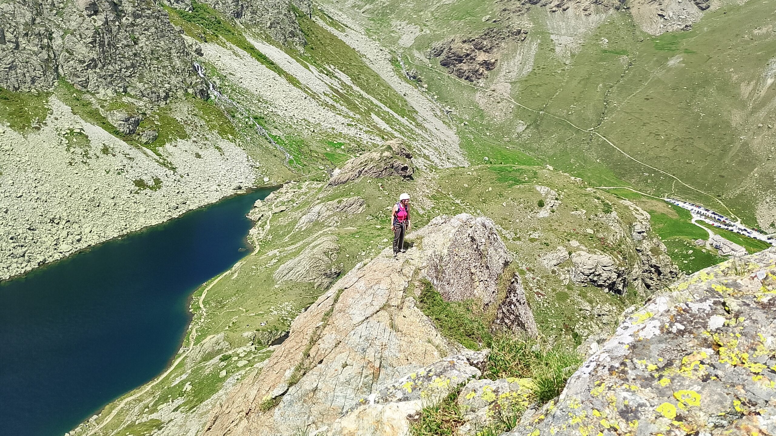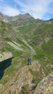 Dalla cima si scende per prati sul lato Ovest, evitando alcuni salti rocciosi fino a raggiungere il sentiero nel margine a monte del Lago Fiorenza.