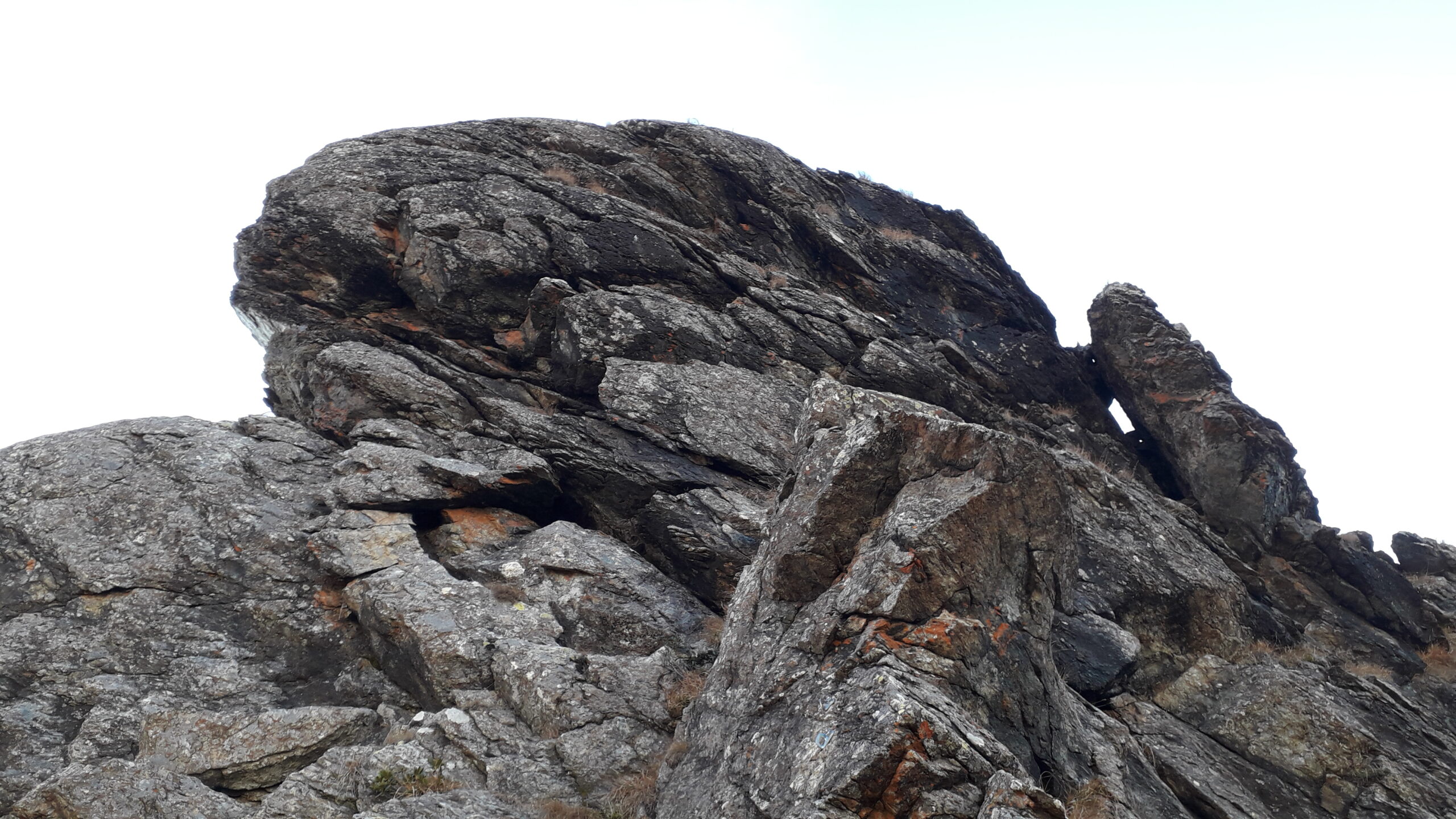 - L6: salire la bella placca lavorata (IV) e poi brevemente per cresta si raggiunge la sosta sotto un tettino