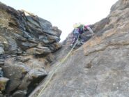 La via viene descritta a tiri ma in più punti è possibile procedere in conserva.