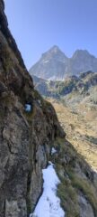 Dopo la pioggia del sabato con mio figlio sono tornato su Euro 3000. La via è facile e didattica, Paolo ha salito da primo tutti i facili tiri imparando ad usare i friend. Davvero una soddisfazione… Considerando poi la grandine scesa simile a neve sulle cenge e la temperatura al mattina frizzante, hanno reso la salita bellissima col Monviso imbiancato sempre in vista.