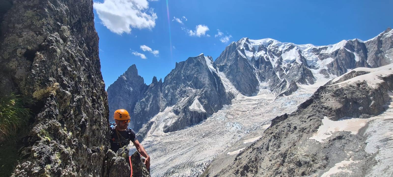 Bellissima e lunga cresta con vista superlativa, tecnicamente non difficile anche se dipende sempre da quale linea si sceglie, noi abbiamo trovato parecchi passaggi interessanti e non banali. A mio parere la sola salita della cresta S0 non ha molto senso, anche perchè la discesa sulla normale non deve essere il massimo. Molto meglio proseguire sulla cresta nord (il socio giglio91 ha aggiornato la relazione inserendo questa possibilità ), che poi è quella più affilata e divertente, arrivare all’intaglio con il Pere Eternel e poi scendere usando le doppie della via Giovanni Paolo.