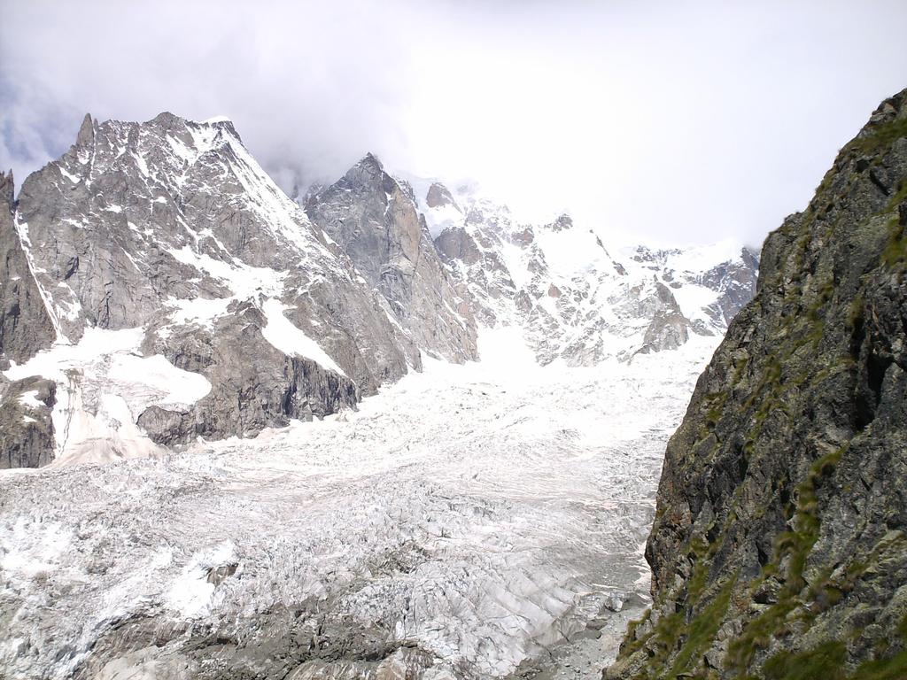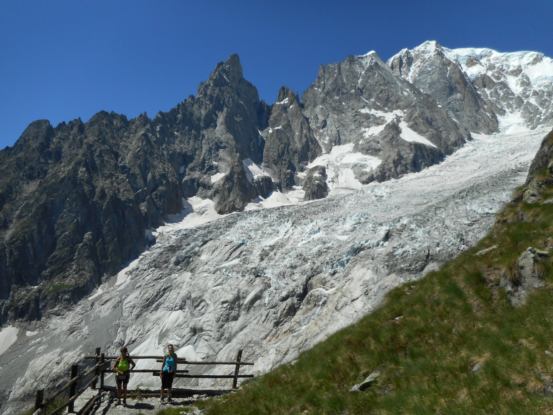 Quì si apre un panorama straordinario: il Ghiacciaio della Brenva dominato dal Monte Bianco incombe dall’alto, serrato tra il Monte Bianco di Courmayeur, l’Aiguille Blanche, l’Aiguille Noir e le Dames Anglaises,un insieme di rocce accuminate, di picchi aguzzi come denti di squalo.