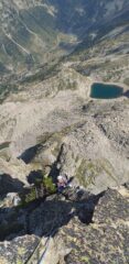 Bellissima via. Abbiamo sostituito un maion e attrezzato con cordino e maion l’ultima calata, in modo da evitare l’attraversamento per reperire l’ultima sosta.