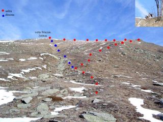 partito con l’intenzione di usare le racchette, causa assenza clamorosa di neve, sono andato su senza. partito da brich (per raggiungerlo seguire la strada per il pian della regina, prima di raggiungere serre uberto girare a dx, strada cmq segnalata con cartelli, asfaltata e pulita). un sentiero vero e proprio nn c’è, bisogna navigare a vista. io (cfr foto) sono passato dall’antecima e poi per cresta (l’unico punto con della neve, cmq evitabile) sono giunto alla vetta vera e propria (croce). a mio avviso sconsigliabile con nebbia (pendii vasti senza molti punti di riferimento). nessuno lungo il percorso, solo 2 branchi di ungulati (caprioli?).