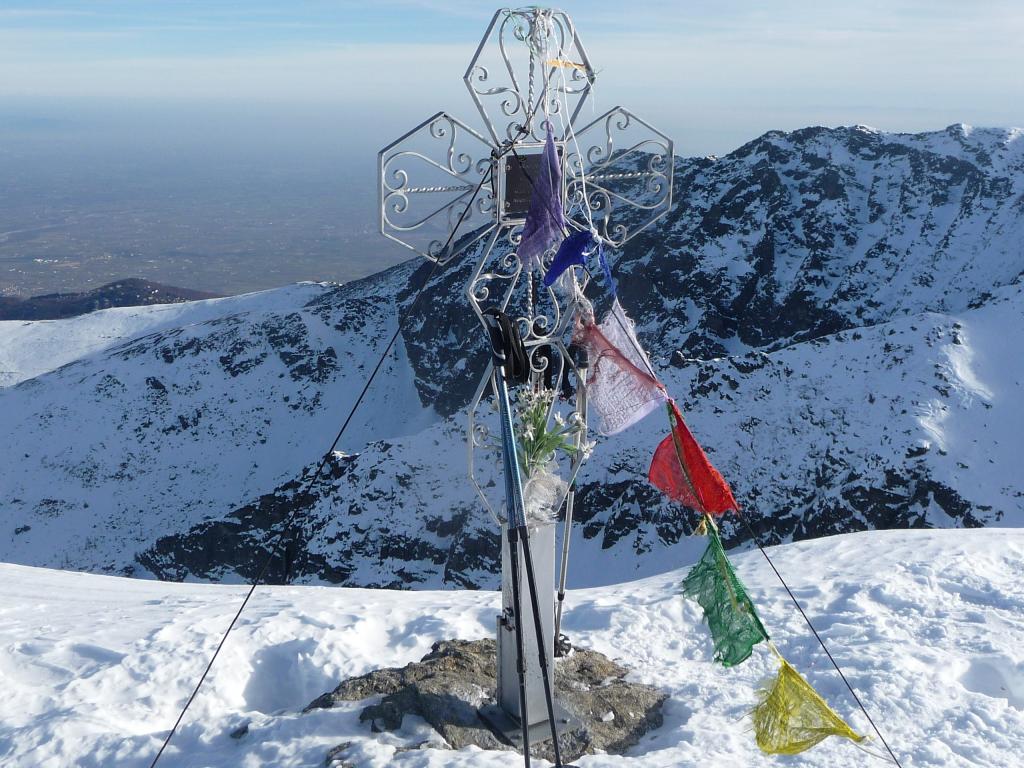 Ciaspole calzate a pochi metri dall’auto, poi neve inizialmente un po’ scarsa e da cercare, ma più in alto tutto bene. Dalla cima (affollata di ski-alp) siamo scesi per dolci e solitari declivi fino al colle delle Porte e da qui, tenendoci alti sul vallone, a mezza costa sulla sinistra idrografica, siamo ritornati al parcheggio: consigliabile, facendo attenzione nel taglio dei pendii piuttosto ripidi; gita immersi sempre in un magnifico sole.