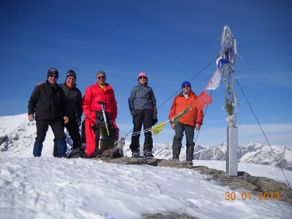 bella giornata di sole ,fin troppo calda, la neve gia’ umida dal mattino ,in punta tutti e cinque soddisfatti, bravi.