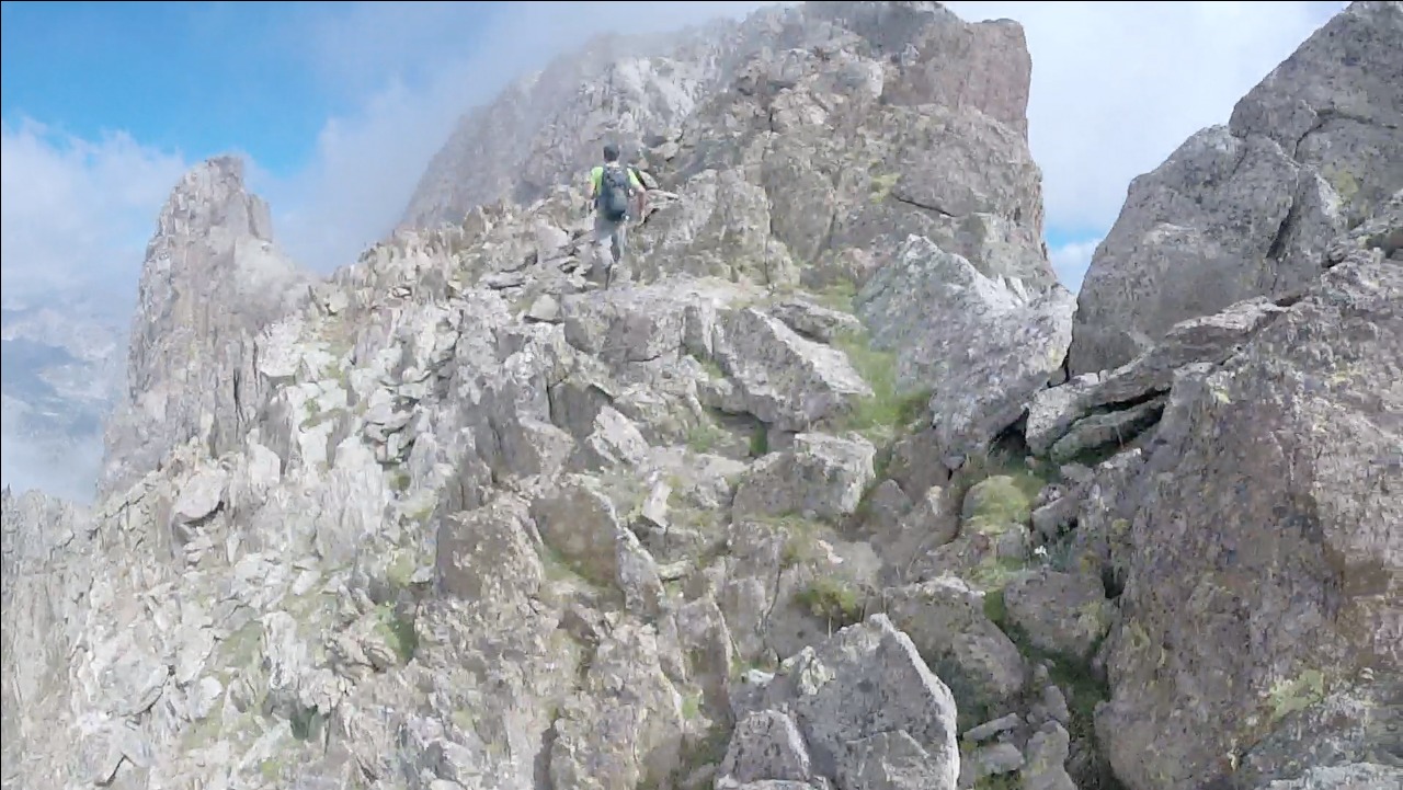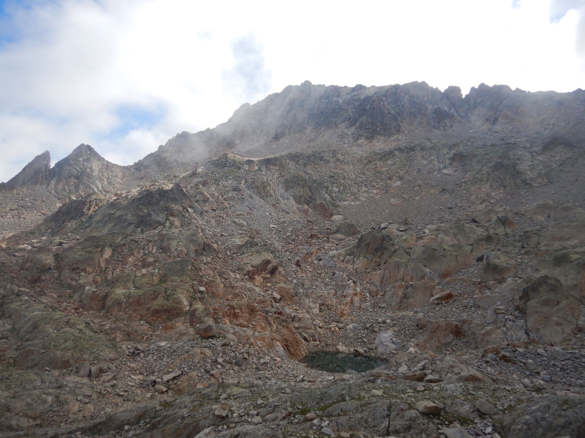 Lunga e faticosa gita, non tanto per lo sviluppo (circa 15 km) ma per il dislivello complessivo (circa 1700 m) e per i faticosi saliscendi su pietraie. Divertente e ingaggiante tratto alpinistico nella traversata del Brocan e nella salita al Bastione. Partiti da Pian della Casa del Re, seguendo il sentiero per il Rifugio Remondino, ad un certo punto abbiamo deviato a destra per il Colle del Mercantour. Salita ripida su sentiero, per giungere ad una conca pietrosa, risalita la quale raggiungiamo il Colle Mercantour est o Ghigliè. Quindi prendiamo a destra e ci troviamo in una pietraia sopra il Lago della Ghigliè, che non raggiungiamo ma superiamo innalzandoci su balze rocciose, frammiste a pietraia, per pervenire ad una pietraia in salita che ci condurrà alla cresta SE del Brocan. Qui l’itinerario diventa alpinistico. Roccette ben appigliate (I) fino ad una prima forcellina (colatoi a destra e sinistra); quindi l’itinerario in cresta si presenta discretamente pianeggiante fino a raggiungere una paretina che occorre disarrampicare per raggiungere una forcella da cui dipartono due colatoi in direzione opposta, molto ripidi e sfasciumosi. Dal terrazzino si innalza una placca (II/III) per cui ci leghiamo e saliamo. Al suo termine c’è una sosta per una calata. Le difficoltà terminano perchè superate le ultime roccette, arriviamo in vetta. Non ci fosse stata un pò di nebbia, si sarebbe visto il mare e un panorama superlativo. In ogni caso potevo scorgere i laghi di Brocan, del Chiotas e della Piastra, mentre sull’altro versante si potevano scorgere i Laghi di Fremamorta. Dopo la sosta in vetta scendiamo per la ia Normale, seguendo la Cresta N. Una cengia prima, quindi roccette da disarrampicare facilmente sul lato Rovina, quindi una cengia esposta, al termine della quale si trova, sul versante Assedras, una placca fessurata ma ben appigliata da disarrampicare; a questa segue un tratto di roccette verticali (II) ben appigliate, che conducono alla forcella Nord; anche da questa si dipanano due ripidi colatoi sfasciumosi. Di qui raggiungiamo una cengia di discesa, dove ci sleghiamo, e scendiamo tra sfasciumi e pietraie, da perdere un centinaio di metri di quota; non raggiungiamo il grosso ometto descritto nelle relazioni ma attraversiamo la pietraia per poi disarrampicare facilmente una placconata ben appigliata; quindi alla pietraia sottostante ci teniamo paralleli alla cresta prima, e in diagonale verso la cresta N poi. Cresta che disarrampicheremo fino al Colle di Brocan. Da qui proseguiremo per il Bastione, e, scesi dalla stgessa via di salita, scendiamo al Remondino, e di qui a pian della Casa del Re per chiudere l’anello
