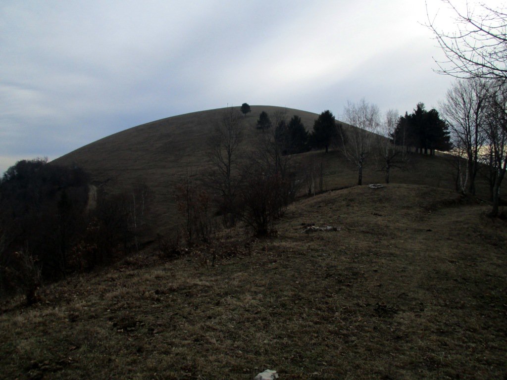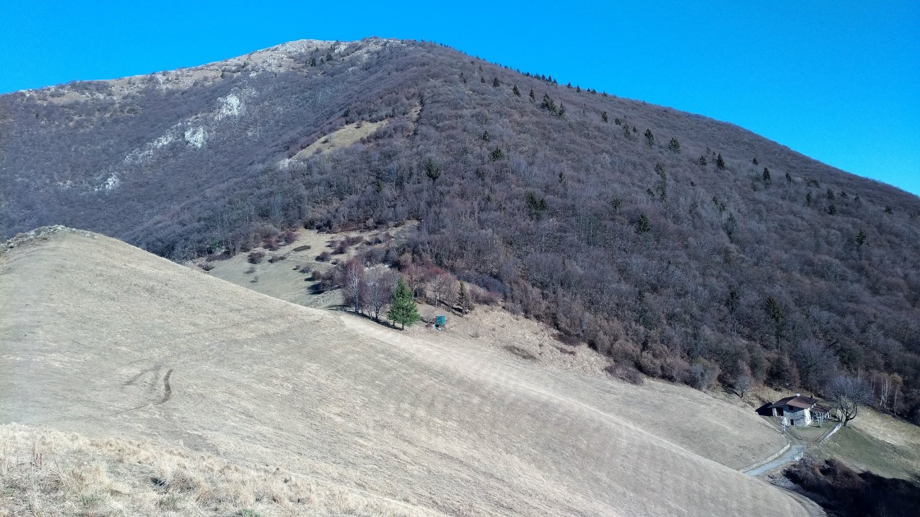 Si percorre il bel bosco, fino alla Rolla, da questa in direzione sud si torna nel bosco fino a raggiungere il Colle di Oregia, con altre postazioni di caccia, si evitano le carrozzabili e si prosegue per tracce su di una cresta boscosa fino a sbuccare a delle case a ridosso del dosso erboso che conduce alla grossa croce del Corno Buco 966m.