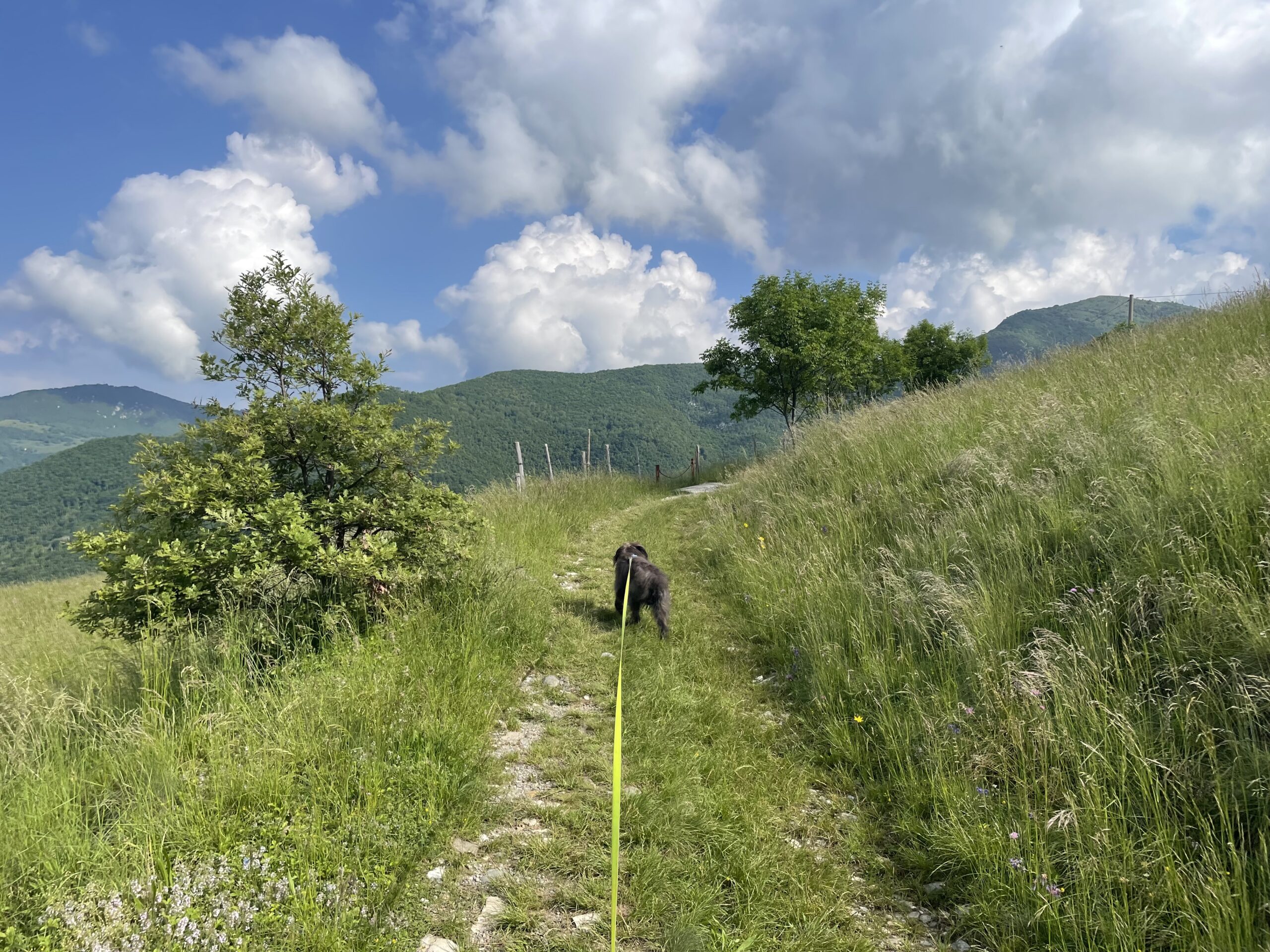 Si seguono le indicazioni per il Bronzone, e poco oltre i ruderi, si puo’ scegliere di percorrere un sentiero che passa piu’ in cresta o uno piu’ basso, fino ad arrivare alla Rolla.