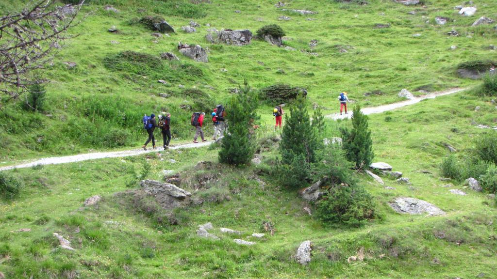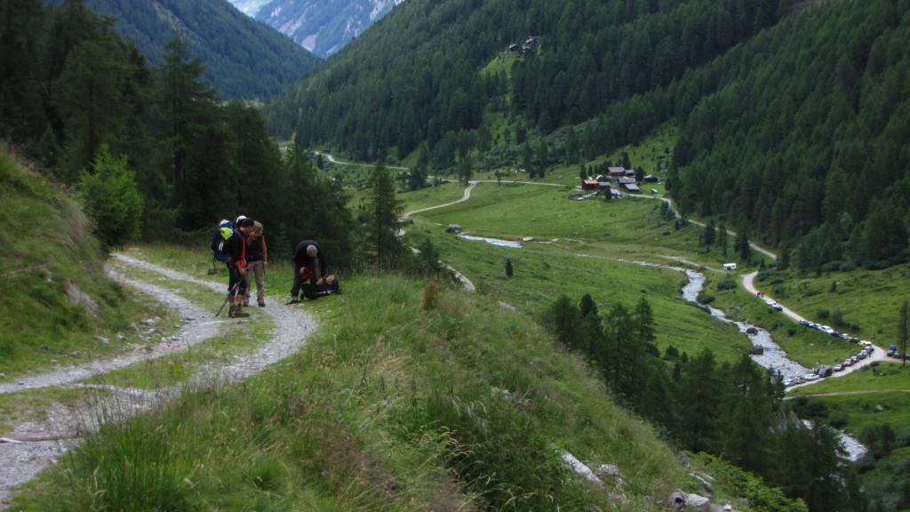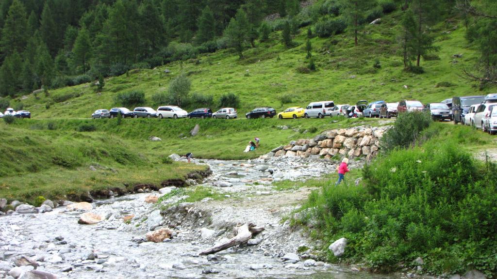 Dal parcheggio oltre Gruben 1900 m, seguire prendere la strada sterrata che sale verso NO, seguendola per qualche km fino ad un lago artificiale dal bel colore turchese. Costeggiare il lago sulla destra sempre sulla strada, poi traversare a sinistra al termine del lago, seguendo una diga in terra, ancora su strada sterrata. Poco oltre imboccare il bel sentiero che sale più ripido per le balze erboso sotto al rifugio, ben visibile da sotto essendo posto sullo sperone. Si giunge al rifugio in rapidamente conduce al rifugio 2519 m 2h scarse dal parcheggio.