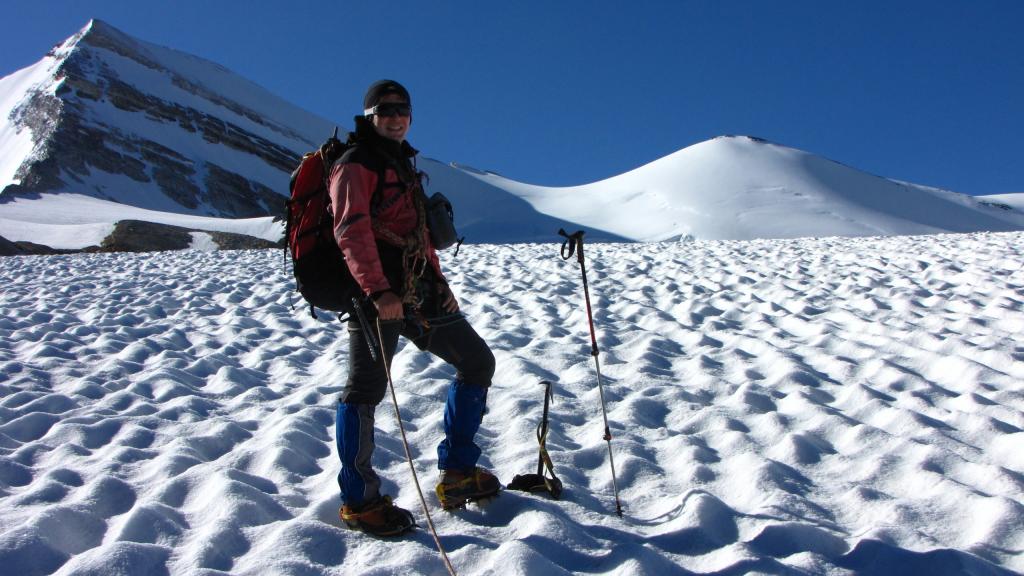 Una gita nata in sostituzione di un noto 4000 del Gruppo dei Mischabel (il rifugio d’appoggio era chiuso per motivi tecnici) ma è stata una scelta davvero indovinata, dato che si tratta di una vallata davvero incantevole, un ambiente di alta montagna grandioso e una cima davvero interessante da salire, che non ha nulla da invidiare a diversi 4000 di mia conoscenza ! Arrivati sabato pomeriggio, dal Sempione e sopo aver risalito la lunga Turtmanntal, parcheggiamo le auto e saliamo nel giro di 2 orette su ottimo sentiero segnalato alla Turtmann Hutte, rifugio davvero bello e confortevole, peccato solamente che la cena e il servizio dei gestori non siano dei migliori…ma per una notte ci si adatta. Cena appena accettabile, ma senza acqua (utilizzata quella dei bagni, come detto da Andrea), senza bicchieri, senza tovaglioli, ma ho visto di peggio in Svizzera. Colazione alle 5,00 e ci mettiamo in movimento intorno alle 6,00. Prima parte di sentiero che corre in piano o in leggera salita fino all’imbocco del canalone Gassi, che risaliamo comunque agevolmente sulle placconate di destra, grazie anche ai cavi metallici di una breve ferratina. Poi risaliamo la morena (percorso sempre molto evidente, ottimamente segnalato da segnavia fino ad un certo punto, e da numerosi ometti poi, che guidano senza possibilità di errore all’inizio del Brunegg Gletscher. Siamo in tredici persone, ci leghiamo in tre cordate da tre e due da due (scusate il gioco di parole). Il ghiacciaio si rivela subito in buone condizioni, c’è qualche piccola zona di ghiaccio affiorante ma si sale senza problemi, seguendo la pista esistente, anche se la prima parte con tante “vaschette” create dal vento è faticosa e un po’ monotona. Ci sono alcuni crepacci, ma visibili, più alcuni ancora coperti…ma per fortuna si riescono ad individuare abbastanza bene. Saliamo tenendoci a vista, io sono in cordata con Maurizio (Maurizioweb) e Mary, saliamo con un ritmo tranquillo, ci godiamo il grandioso ambiente glaciale che abbiamo davanti e intorno…oltre alle foto di rito, che non possono certo mancare ! Poi superiamo il ripido pendio che porta al colle di quota 3670 m. dove facciamo una breve sosta…da qui si apre una visuale magnifica sul favoloso Weisshorn ! In compagnia del vento e di nuvole che vanno e vengono proseguiamo in cresta, su neve dura e compatta (una goduria da salire con i ramponi ai piedi !). Peccato che quando arriviamo in cima alcuni dei nostri compagni di gita abbiano già iniziato la discesa…avrei voluto fare una foto di gruppo in vetta, ma non è stato possibile stavolta ! noi tre ci godiamo comunque la cima, senza l’ansia da discesa immediata, per una breve “pausa pranzo” e per le foto di vetta…che non possono mai mancare ! Nonostante un pò di nebbia e nuvole di passaggio, il panorama rimane comunque degno di nota ! Oltre a noi oggi, almeno una trentina di persone hanno raggiunto la cima. Poi iniziamo una discesa che non sarà breve e ci costringerà a fare attenzione per la presenza di alcuni crepacci coperti e abbastanza insidiosi da superare. Arrivati in fondo, troviamo una parte dei nostri compagni di gita ad attenderci, con i quali scendiamo al rifugio. Qui salutiamo tutti gli amici che scendono a valle e ritornano a casa, mentre io, Davide ed Enrico M. restiamo al rifugio per fare una seconda cima domani, contando su previsioni meteo ottime ! Una gita del “Gruppo Camosci” del CAI Ligure di Genova, organizzata dal sottoscritto, con 13 partecipanti : Maurizioweb, Andrea81, Mary, Francesca T., Luciano T., Enrico M., Enrico C., Luigi C., Daniele P., Maurizio C., Alessandro S., Edo R. che ringrazio per la partecipazione e la buona compagnia. Peccato solamente per Maurizio C. che per rottura di un rampone ha dovuto rinunciare alla cima.