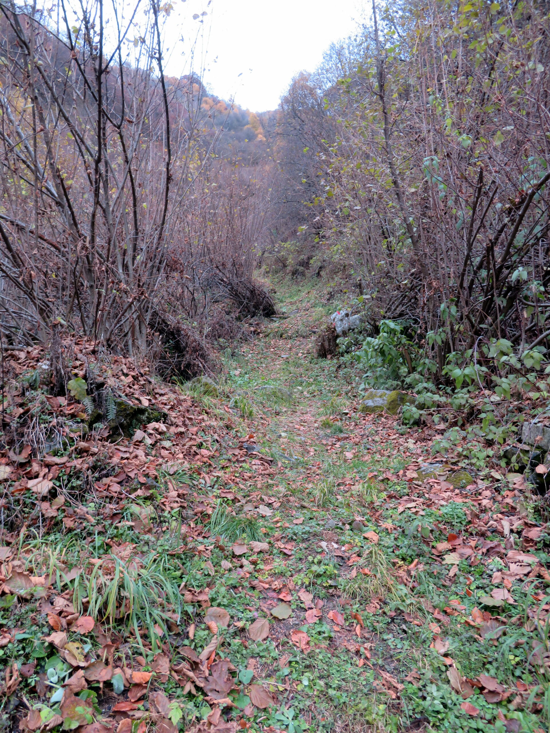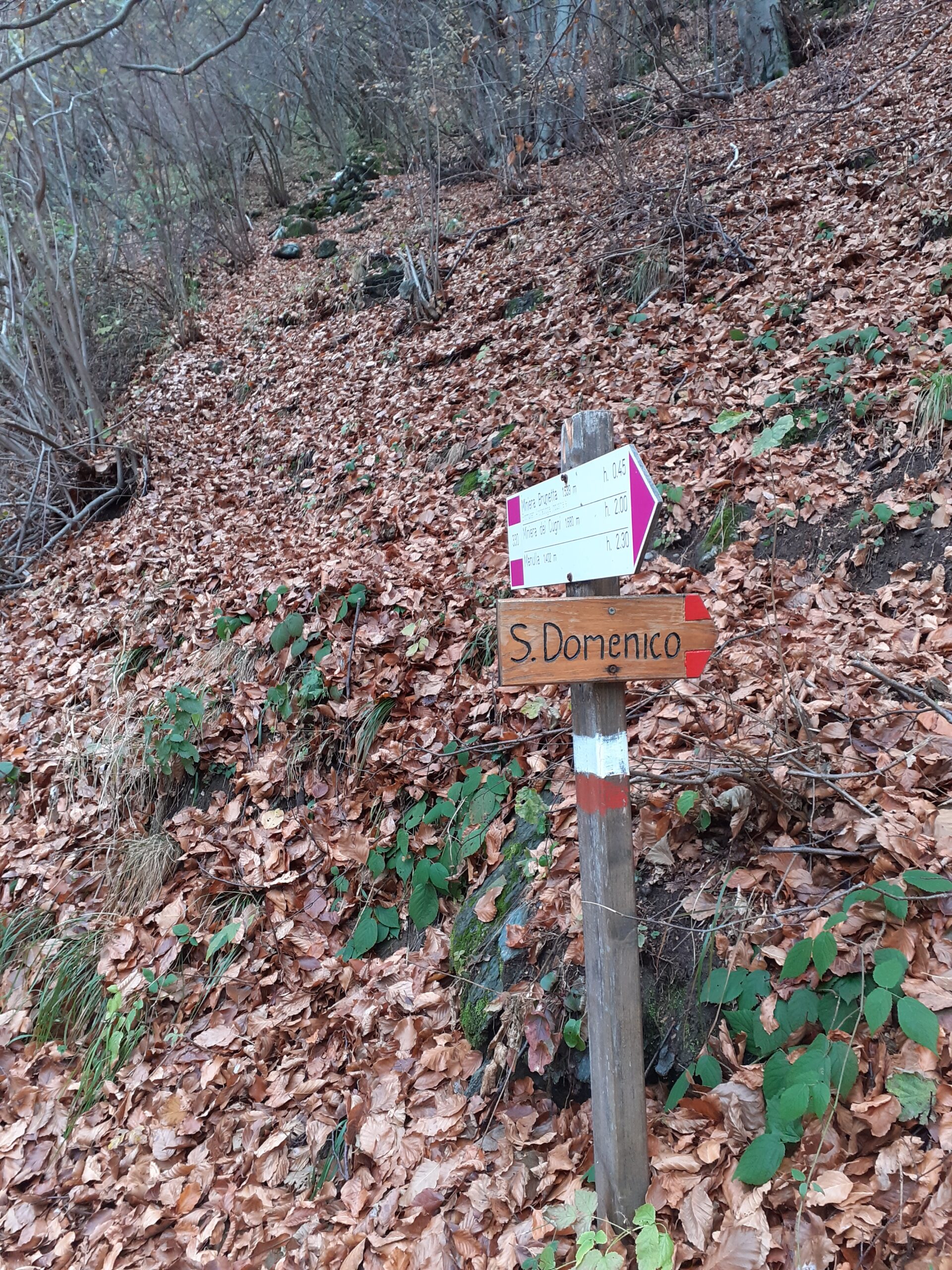 Il giro ad anello che ho compiuto io, non è quello descritto nella relazione. Da Vrù per la Miniera Brunetta, ma a quota 1400 circa, svolta a sn, cartello indicatore per San Domeinco, su sentiero 329A, ripristinato da un gruppo di volontari di Vrù, pulito e ben segnalato da bolli b/r passando all’Alpe Dra di sotto, fino all’alpe Dra, con San Domenico già ben visibile. Discesa sul 329 che scende a Lities. Ritorno a Vrù sul 330A Vi ‘d Miculà molto fogliato e scivoloso.