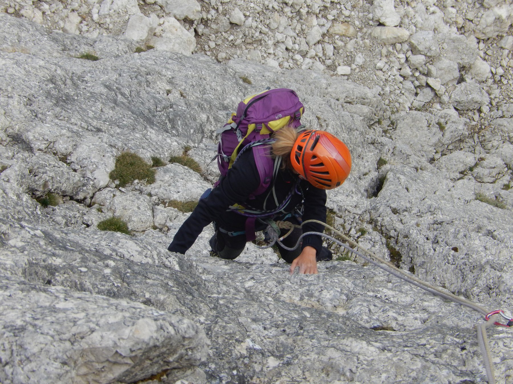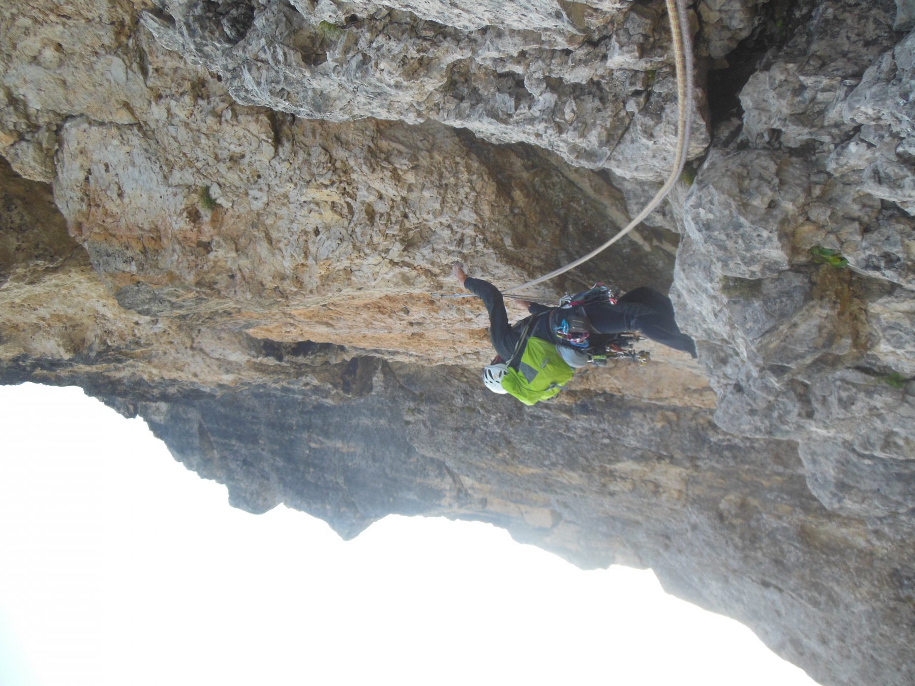Sicuramente i gradi qui riportati poco corrispondono alle mie impressioni…Ottima invece la relazione di Bernardi, anche se con qualche piccola imprecisione, stranamente. Per me i gradi giusti sono: L1: 6a+ ; L2: 5c; L3:6a+; L4:6b+; L5-L6 (concatenati): IV-; L7-L8 (concatenati): 6c (continuità su prese sfuggenti e passo difficile quasi in uscita); L9: 7a+ (partenza tecnica con primo fix distante, pericoloso, usato friend giallo in un buco, poi boulder su piccolo tettino e continuità finale); L10: 6b (partenza non facile su fessura svasa, pericolosa); L11: 6a; L12: 6c (partenza pericolosa, utile fix a destra della sosta per alzarsi dal tetto); L13: 6a; L14: III (facile rampa e poi muretto)