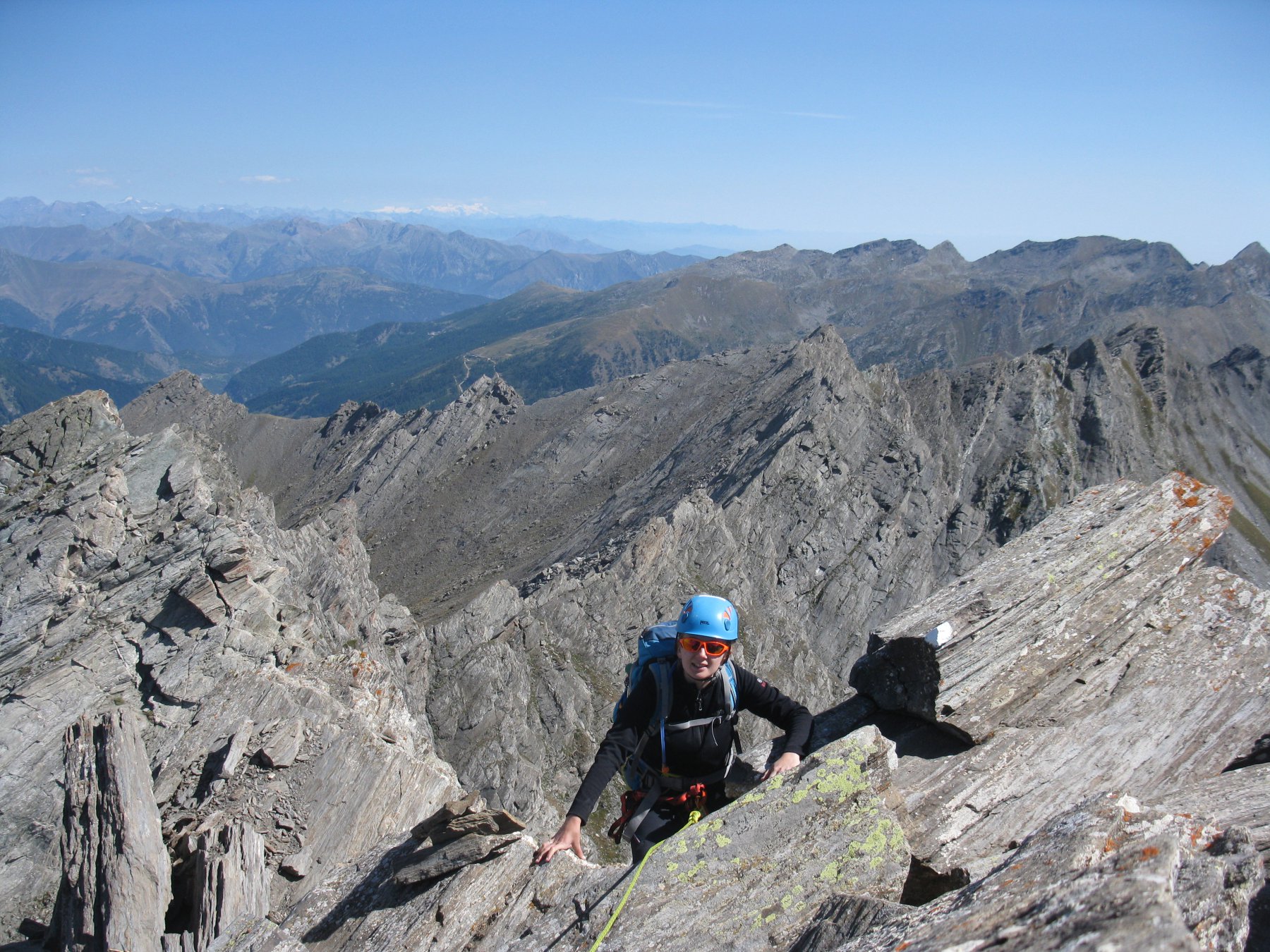 Partiti all’alba delle 8.45 abbiamo seguito subito la cresta dal colle Valpreveyere senza scendere e fare il canalone, direi molto meglio! Cresta facile e divertente, raggiunta la cima anche troppo in fretta (peccato!). Discesa dalla normale della Val Pellice per rientrare poi a Bout du Col passando dalla Cerisira (vedi itinerario e gita a parte).