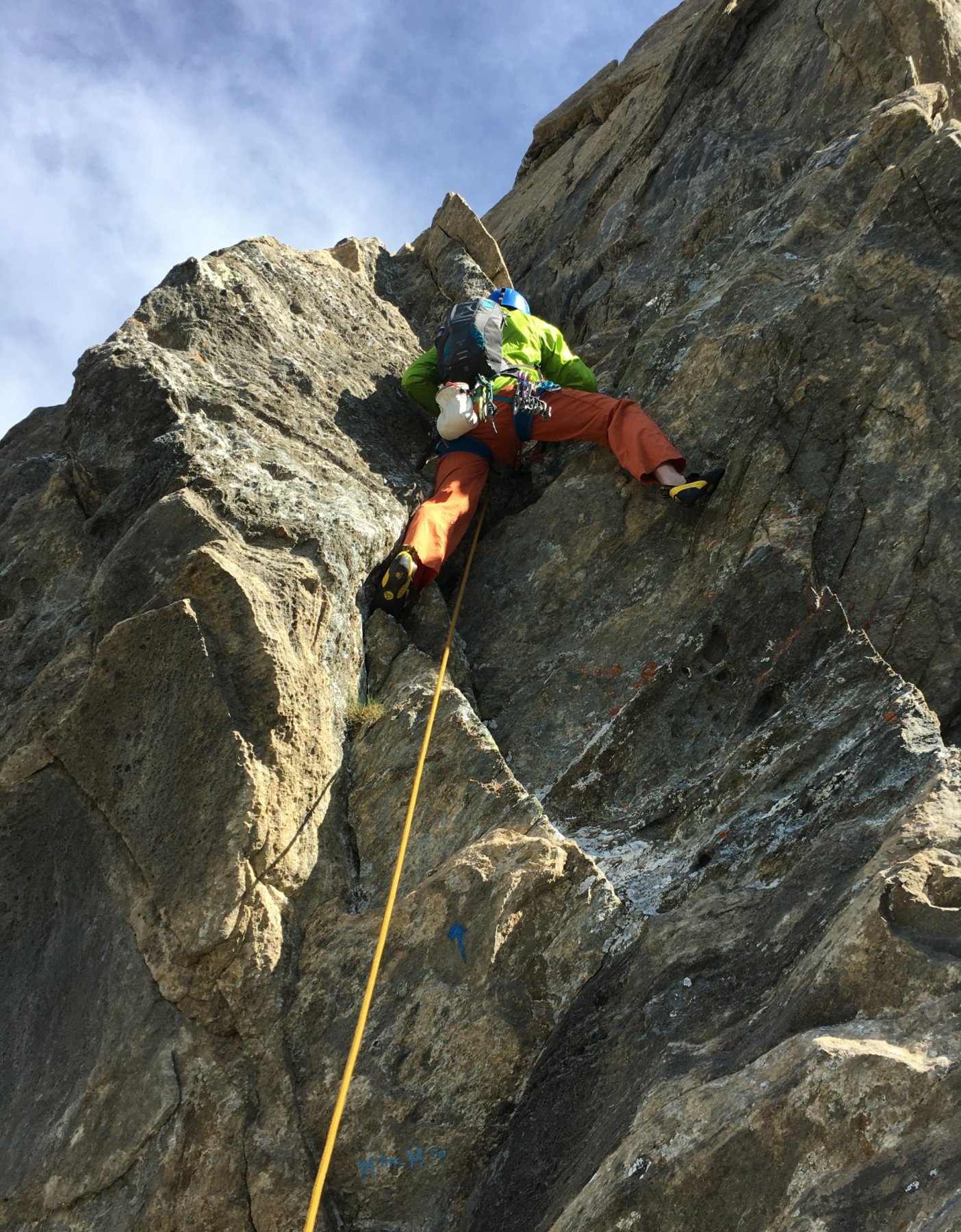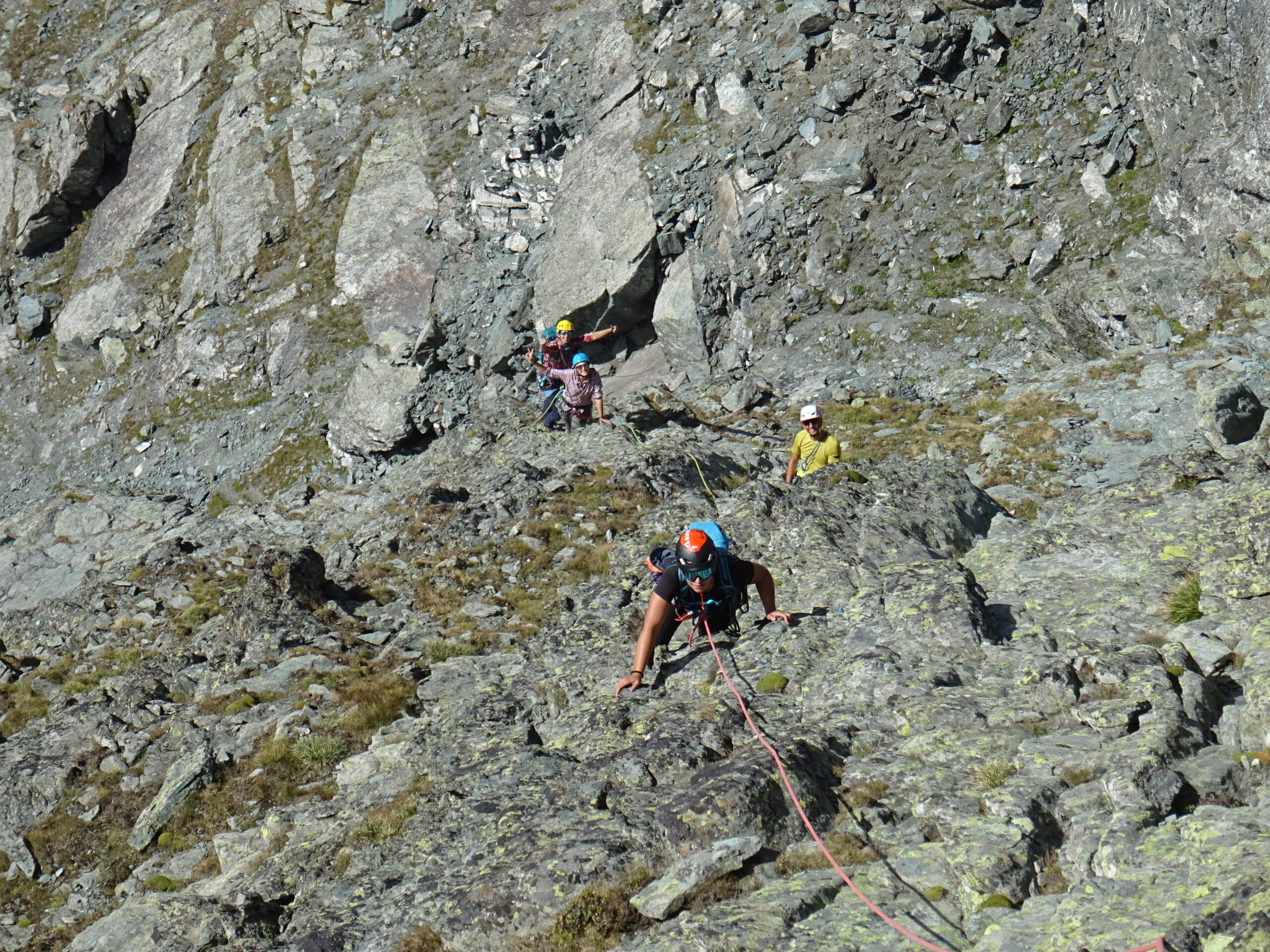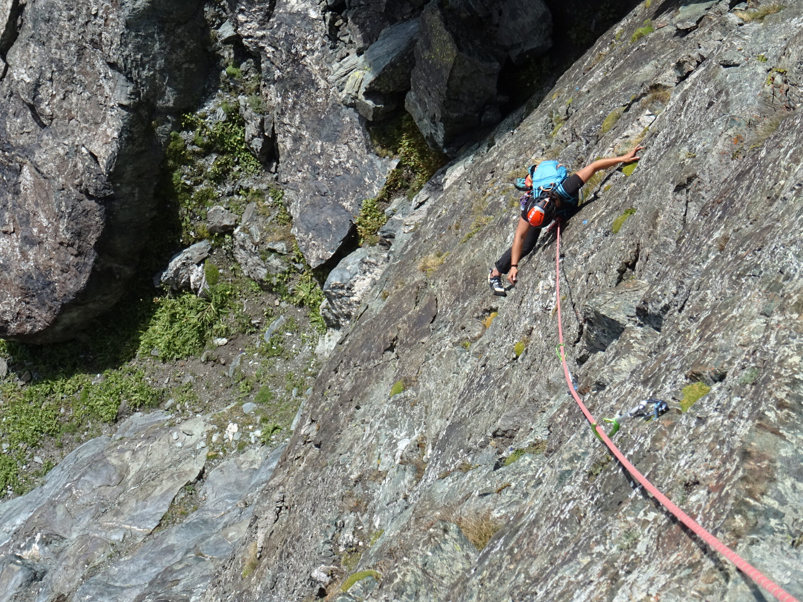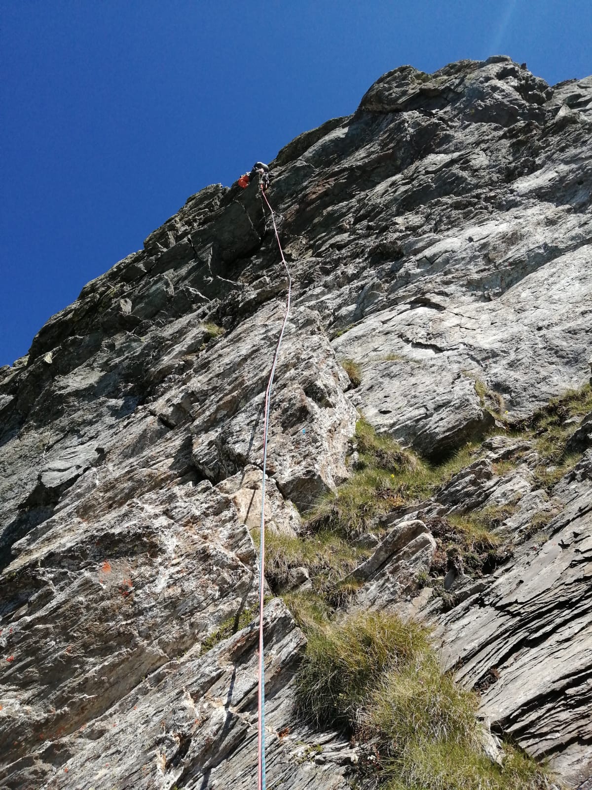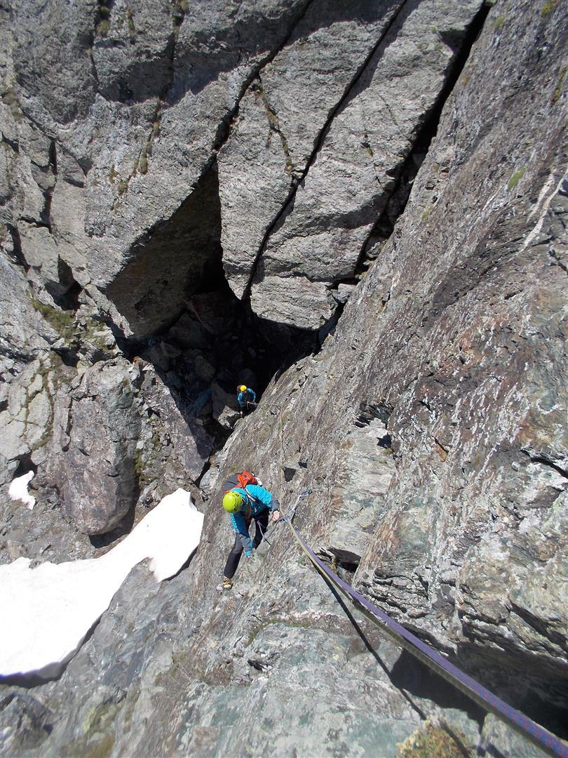 Breve spostamento nel canale erboso sulla sx, fino alla base di un gendarme staccato.