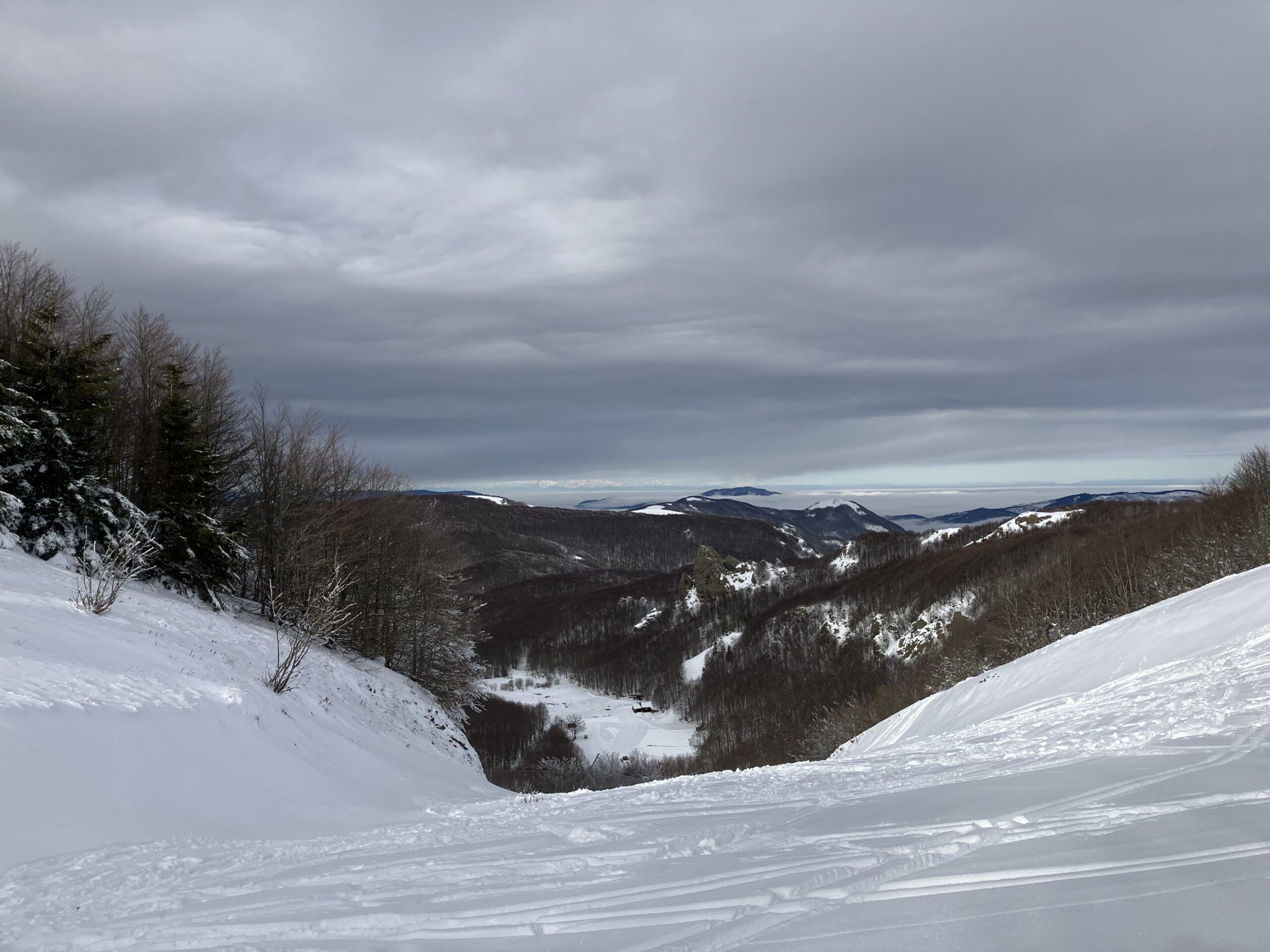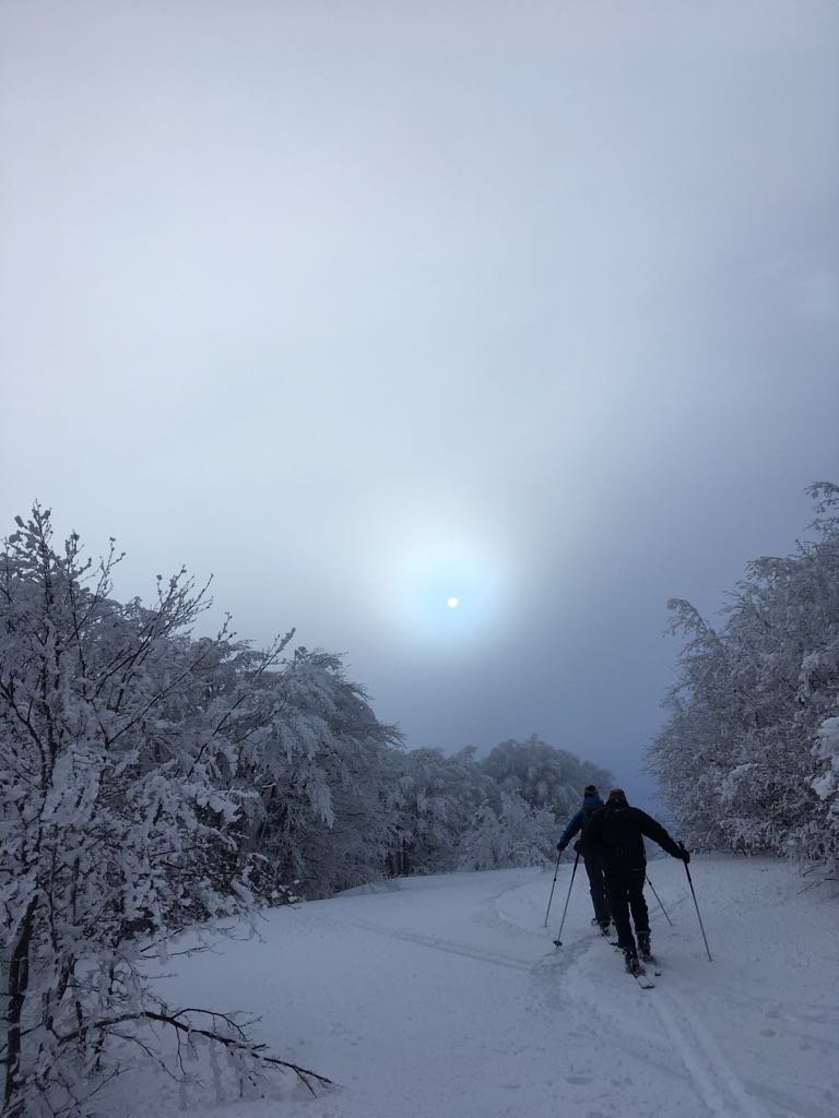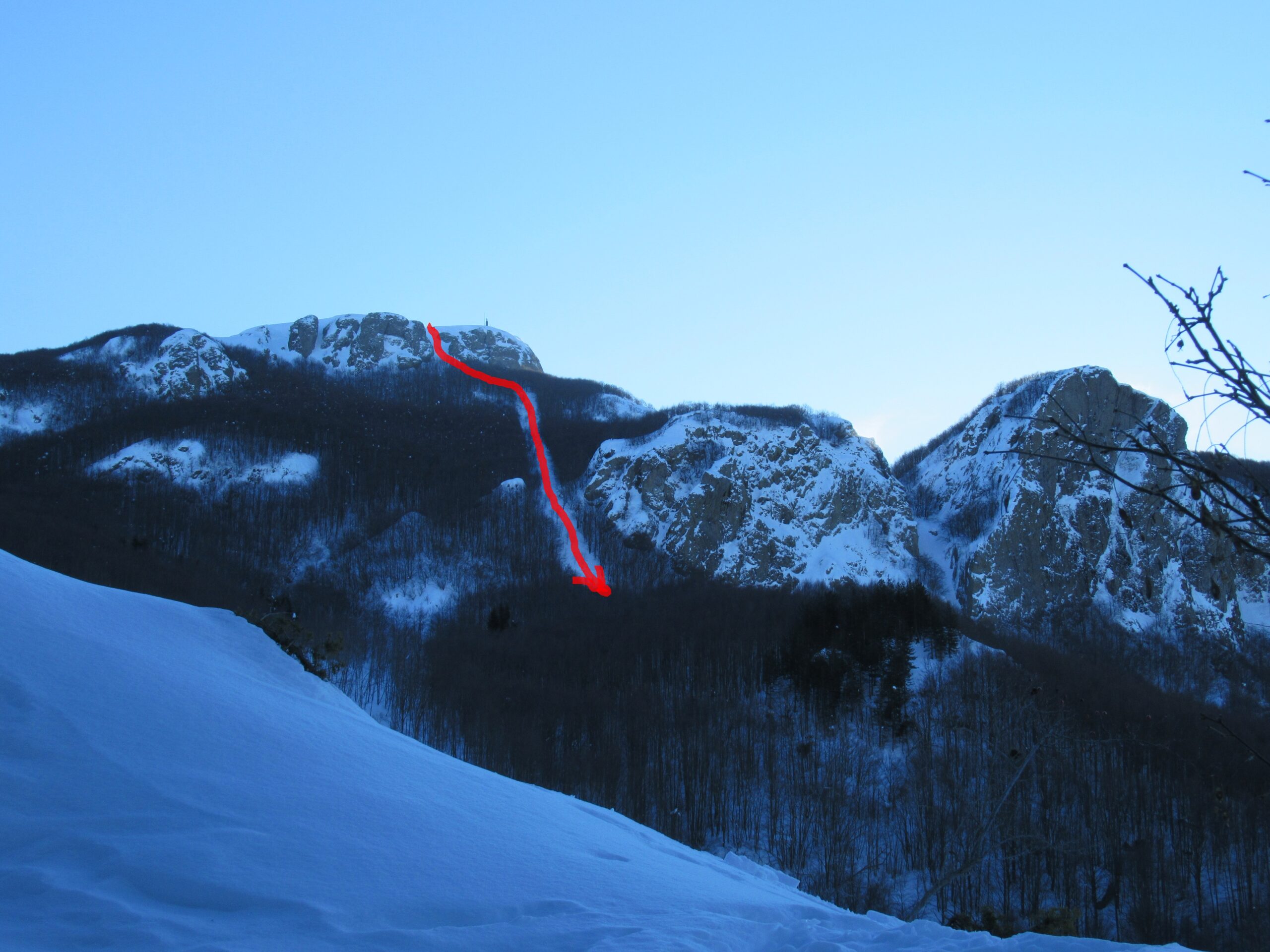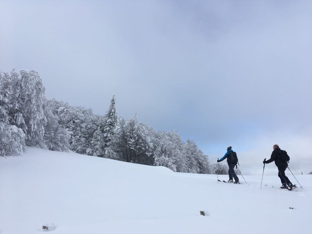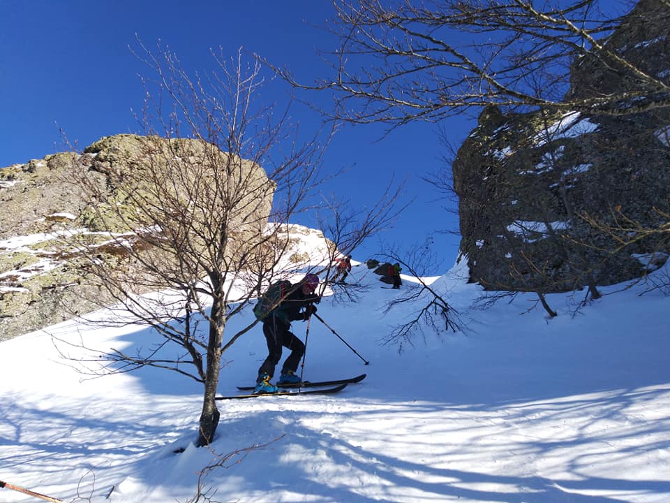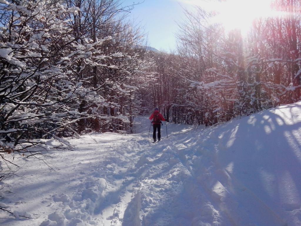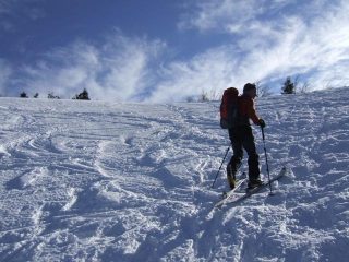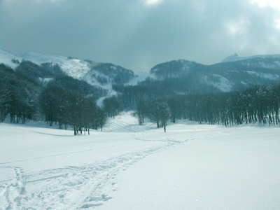 In salita si ripercorre la vecchia pista di discesa (classificata rossa e blu in alto) sino al colletto che separa le due vette: si procede dapprima verso sud per salire al M Maggiorasca (raccomando di scendere a est delle postazioni radio per il breve canalino) e poi, ritornati alla sella, si guadagna la vetta del M Bue. La discesa che consiglio in caso di buon innevamento è l’ex pista nera che corre sotto la linea della vecchia telecabina, per poi riprendere il tracciato di salita poco sopra il Prato della Cipolla. In tal caso la discesa fino al ricongiungimento con la pista “rossa” è da considerarsi BS.