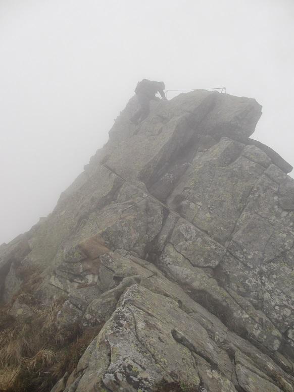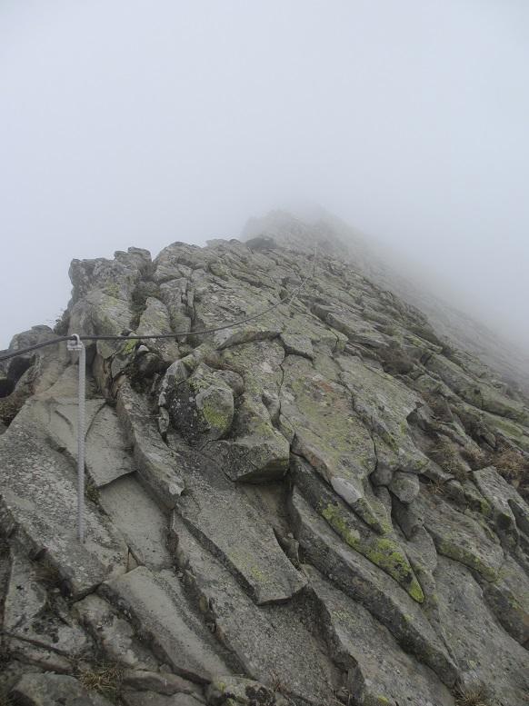 Il tratto attrezzato dei Groppi molto scivoloso per via della nebbia,il resto del percorso non presenta difficoltà,neve dura portante,sul crinale a sud assente.