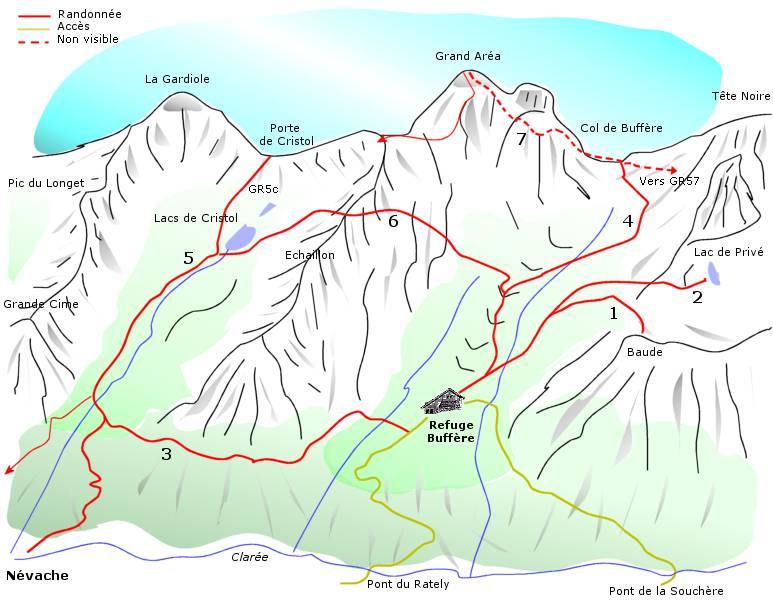 L’apertura anche invernale del rifugio Buffere, raggiungibile in presenza di neve lungo l’itinerario estivo ma partendo da Nevache Ville Haute (1620 m), e la scarsa pendenza dei pendii che ne delimitano il vallone limitrofo, fanno di questa zona una perla per lo sci alpinismo e il trekking con le racchette da neve.