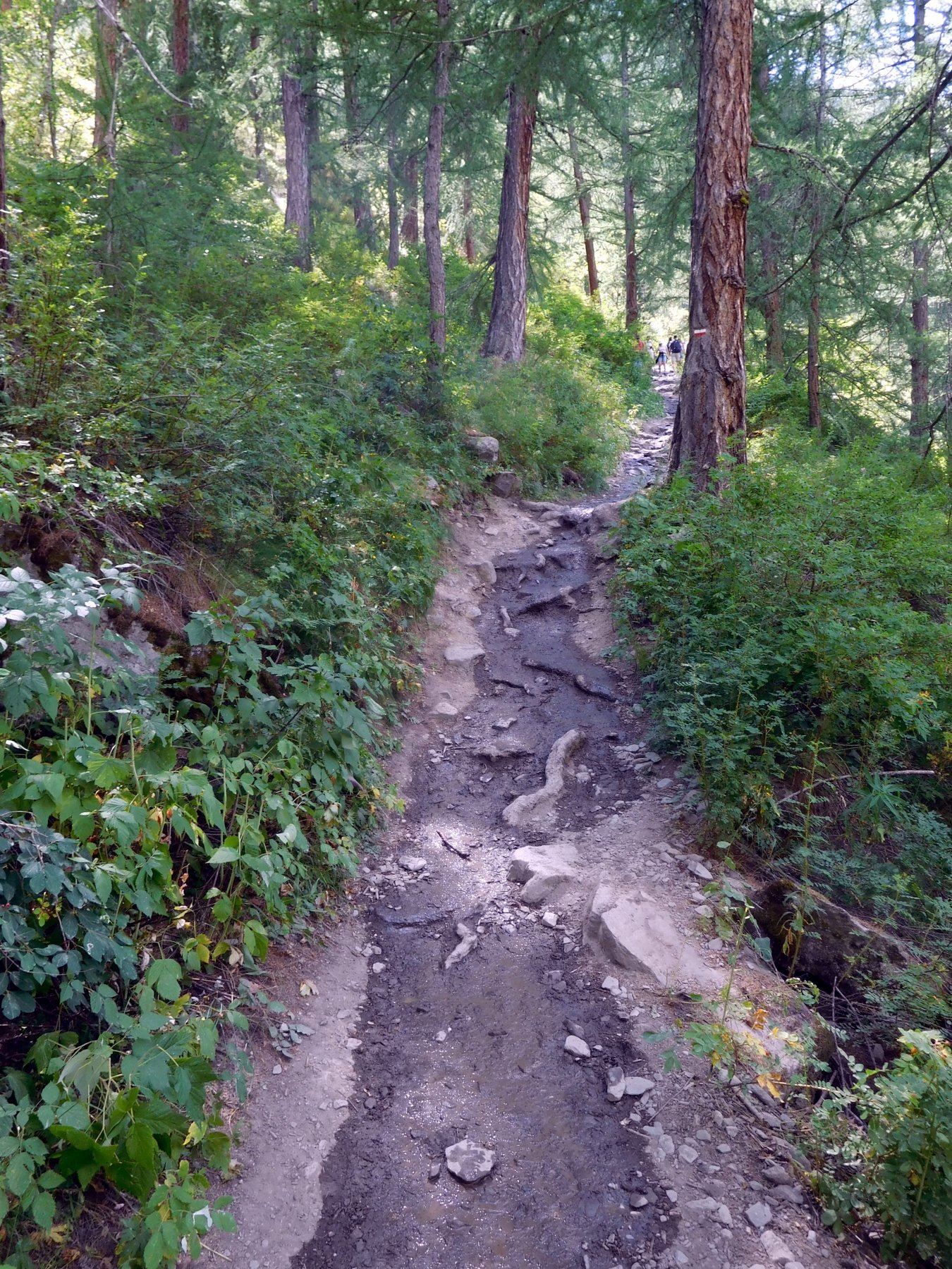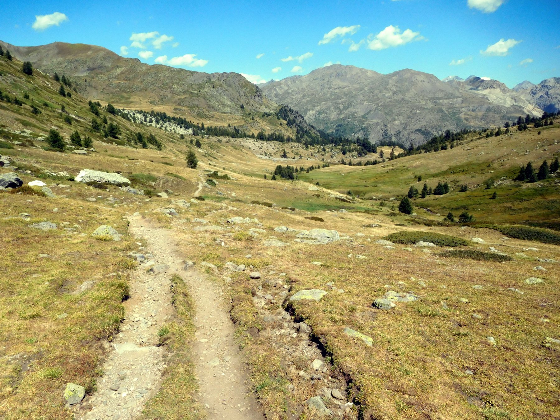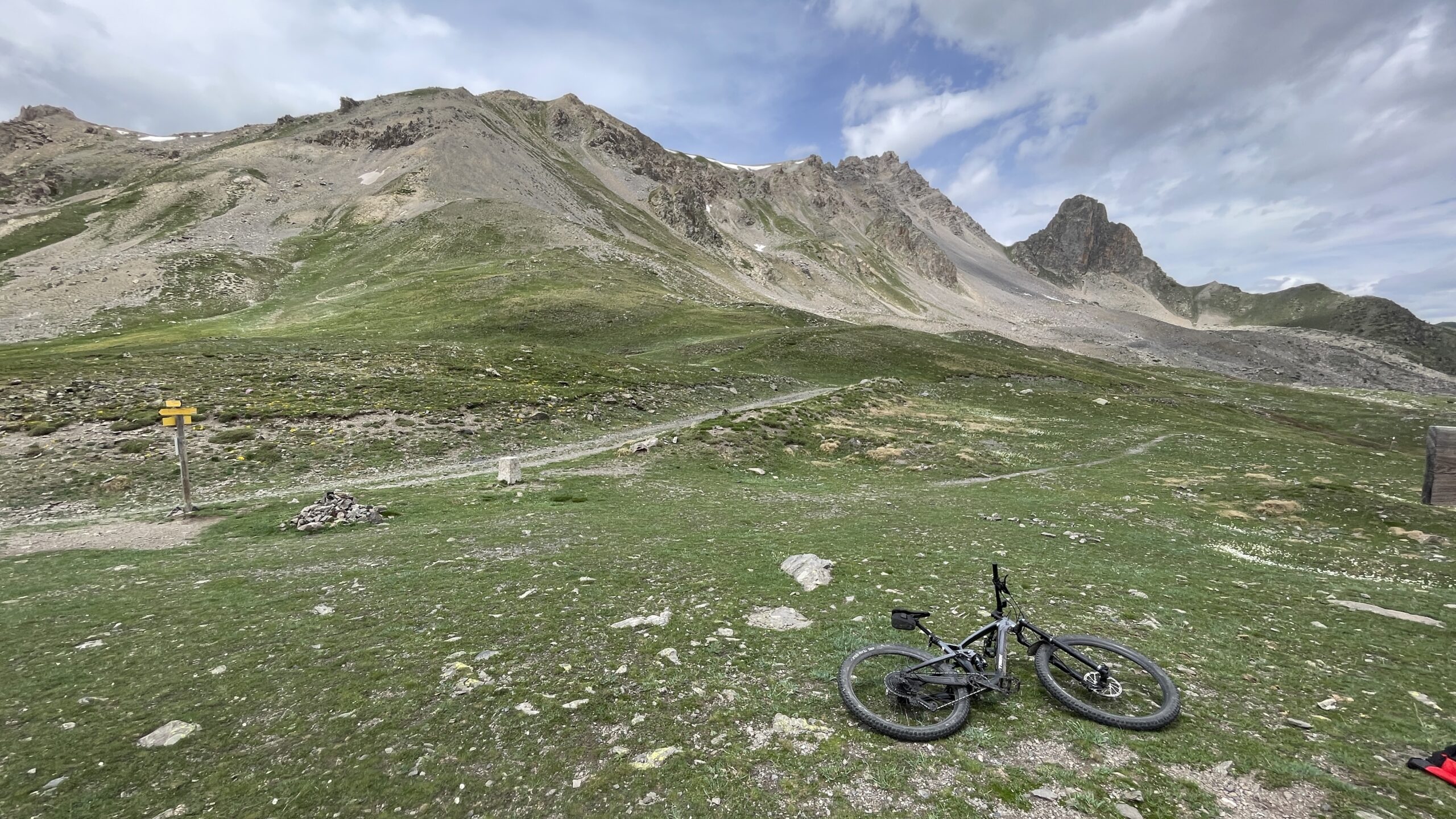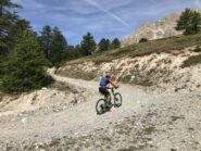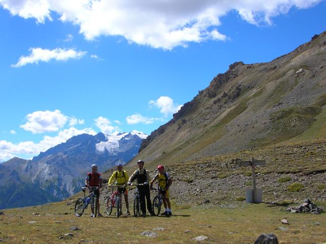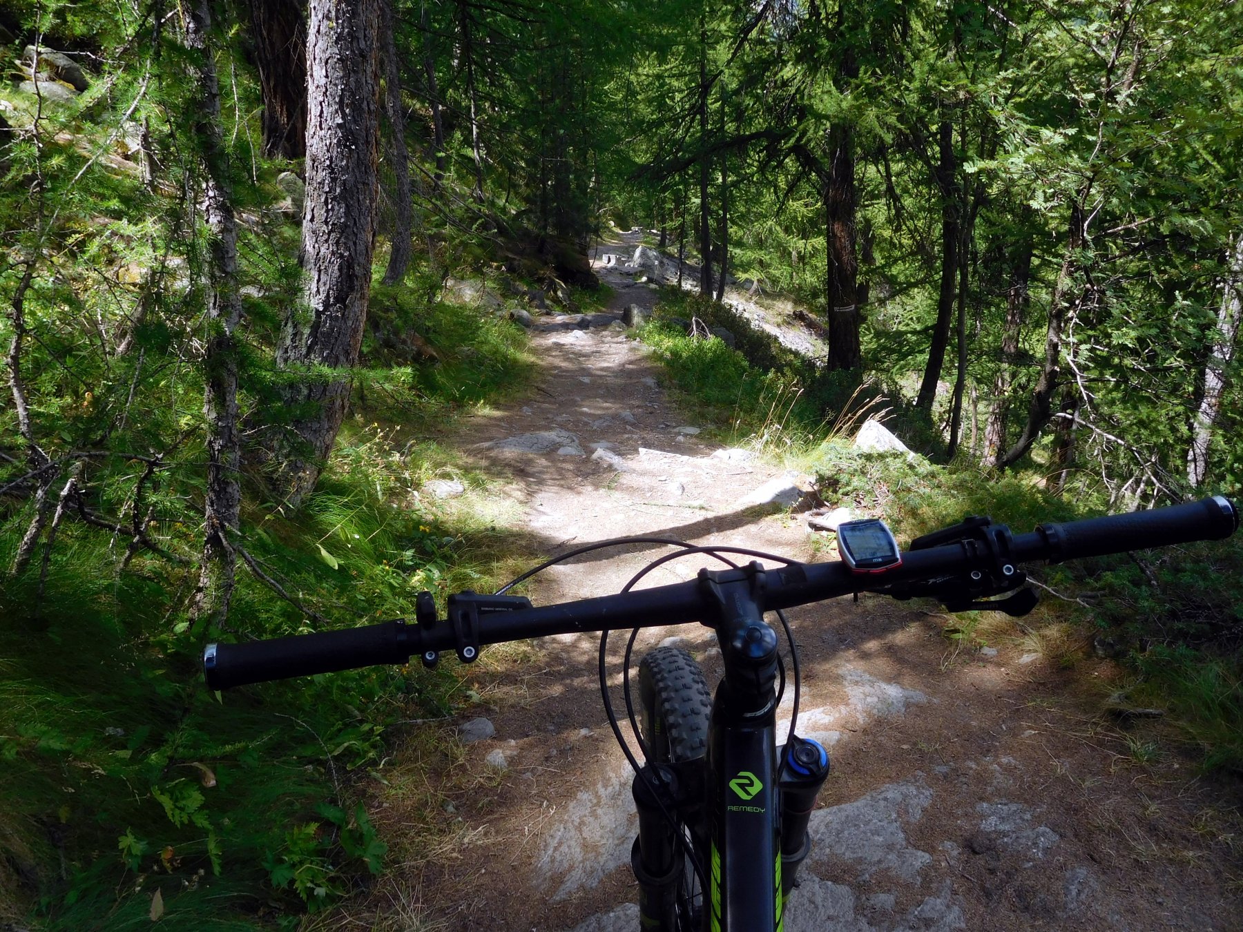 decisamente più sassoso. Dopo circa 300 metri di dislivello si raggiunge il Col de Buffère. Di qui si prende il sentiero che sul versante Nord del colle porta a Nevache. In principio per prati e tracce di sentiero poi per sentiero che si fa via via piu ampio. In certi punti si fa ripido e molto sassoso, non sempre perfettamente pedalabile.
