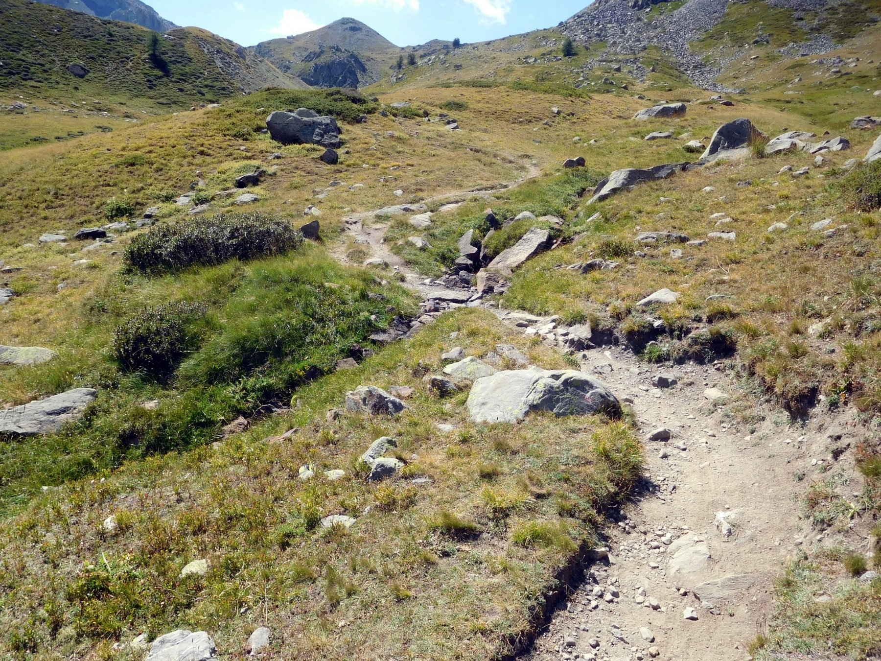 dove il Col de Granon non è segnalato. Non farsi ingannare dalla prima segnalazione. Fatti circa 500 metri di dislivello si arriva ad un gruppetto di baite (Granon). Si prosegue sulla strada fino ad arrivare al colle. Per tutti i bivi successivi tenere sempre la sinistra.