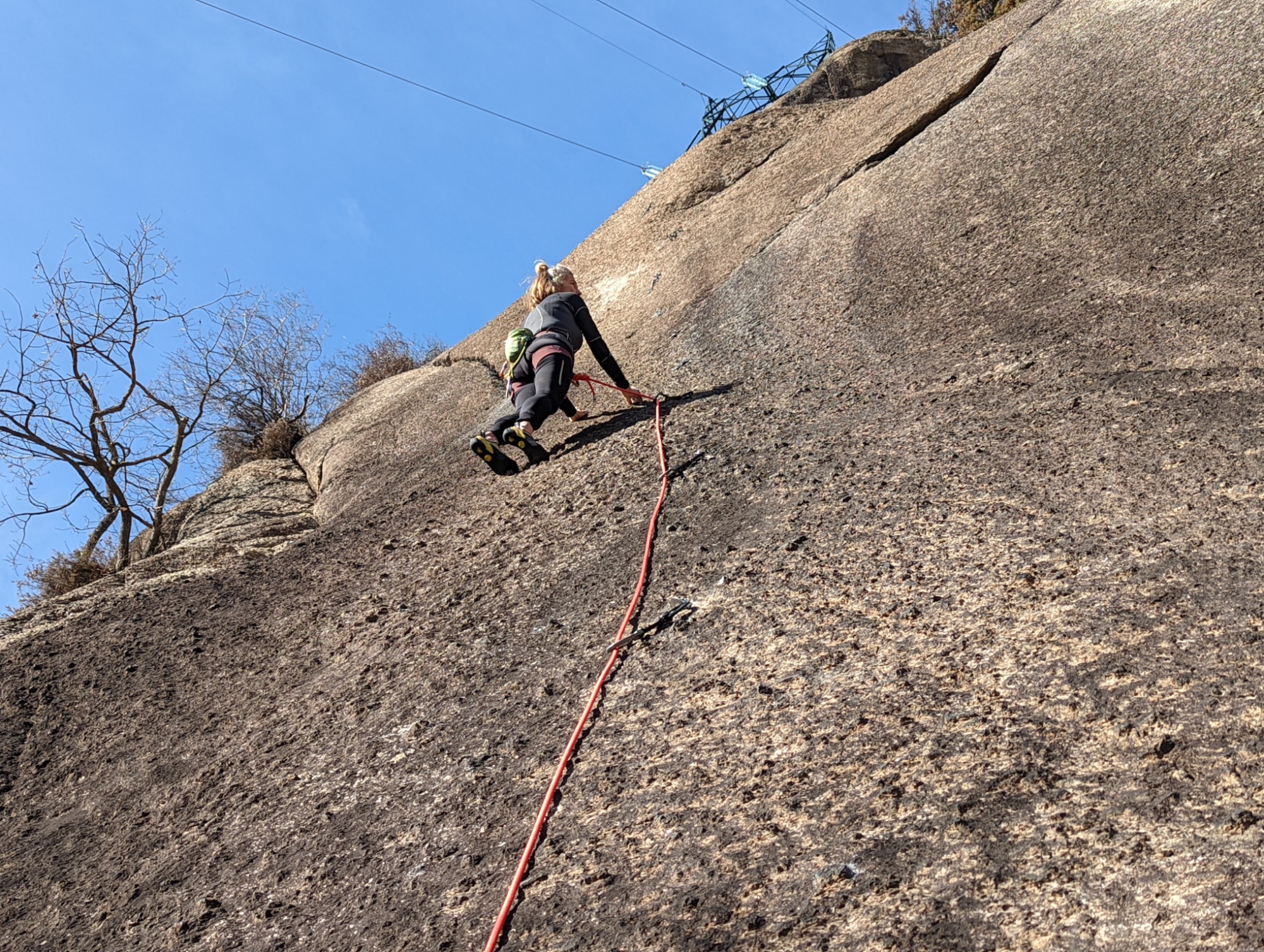 - gnome – fessura meno regolare della precedente, con qualche tratto in placca e passaggi più impegnativi. Perucca; 35m, 6c