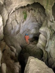 Risorgenza fossile sub-orizzontale dallo sviluppo modesto (500m). Traiettorie semplici e nessuna difficoltà. A 200m. dall’ingresso un sifone di sabbia deve essere svuotato se si desidera proseguire fino al fondo (circa 30 min. di scavo). La grotta chiude su sifone di sabbia. Necessaria solo una tuta leggera, illuminazione ed una pala per il sifone.