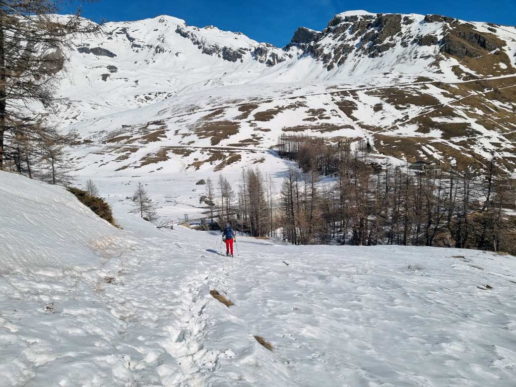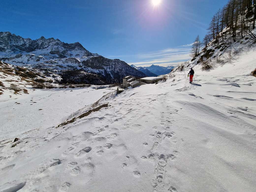 Da qui si sale per il comodo sentiero estivo sino all’alpeggio di Pont che si supera passando sotto il vecchio acquedotto; ignorato poi un ponticello si superano poche balze erbose e, giunti alla sinistra di un paio di baite, si devia a destra compiendo numerosi tornanti.
