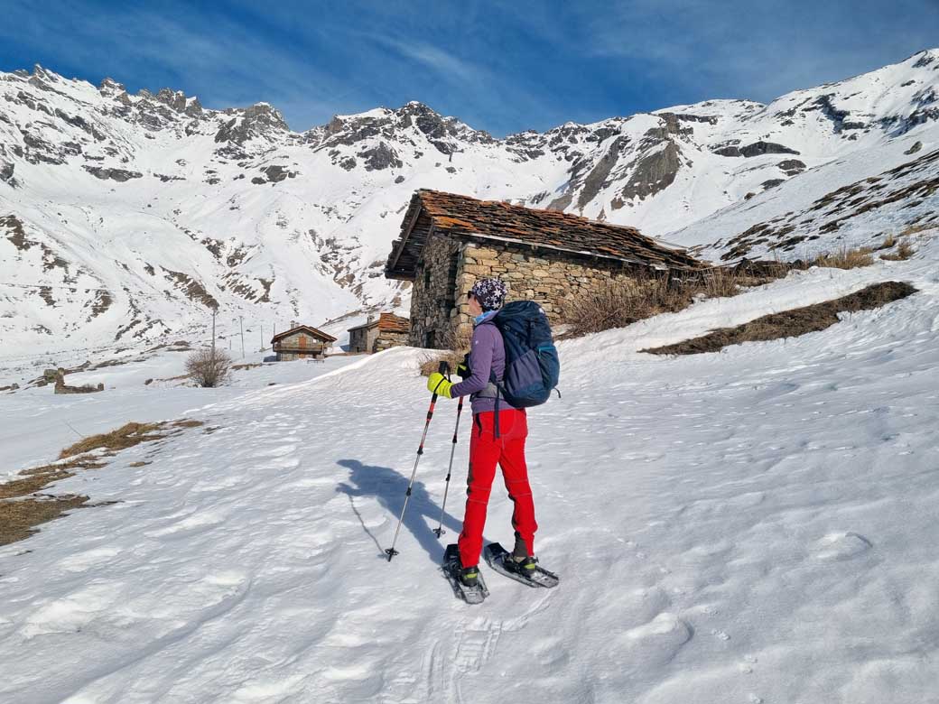 Arrivati a By abbiamo visto i pendii della conca tutti scarichi (condizione essenziale) e abbiamo deciso di compiere l’anello arrivando in fondo al pianoro e passare poi dalle baite di Evéques e ritornare alla diga. Neve continua dalla Casa Farinet, anche se a bordo poderale si poteva ancora camminare per un breve tratto. Neve sempre portante con alcuni ininfluenti sastrugi in fondo al vallone.