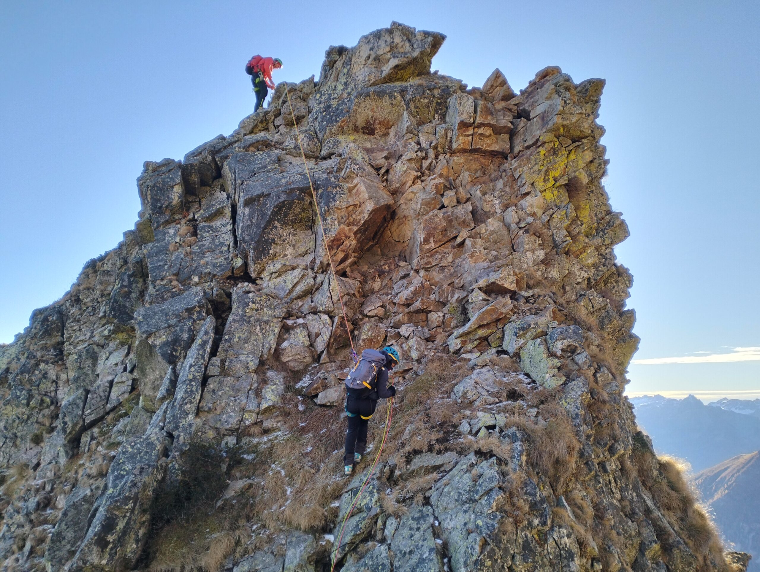 Da Foppolo salire per sentiero fino al Pasoso di Dordona 2061 m. Da qui lasciare il sentiero passando le trincee portandosi sui pendii che portano verso un evidente e caratteristico dentino roccioso di cresta evitabile a sx . Ora il procedere, seppur non difficile, richiede particolare attenzione ed un minimo di capacità (passaggi sul II°) .Raggiunto un intaglio lo si scende per un erto canalino sulla dx lato valtellinese o calandosi con una doppia. Ripresa la salita ,divertente ma sempre sostenuta, si guadagna Cima della Rovera (raggiungibile anche dalla cresta S ) dalla quale ci si deve abbassare con estrema cautela nel primo salto poi proseguire con andamento più pianeggiante ma sempre esposto. sino a degradare alla sella di q. 2320. Da qui proseguire poi ripidamente con numerosi e brevi sali e scendi, aggirando un evidente gendarme, ed un esposta placca che sale una specie di anticima. Da qui in breve si prosegue in direzione dell’ormai visibile vetta di Cima Cadelle.