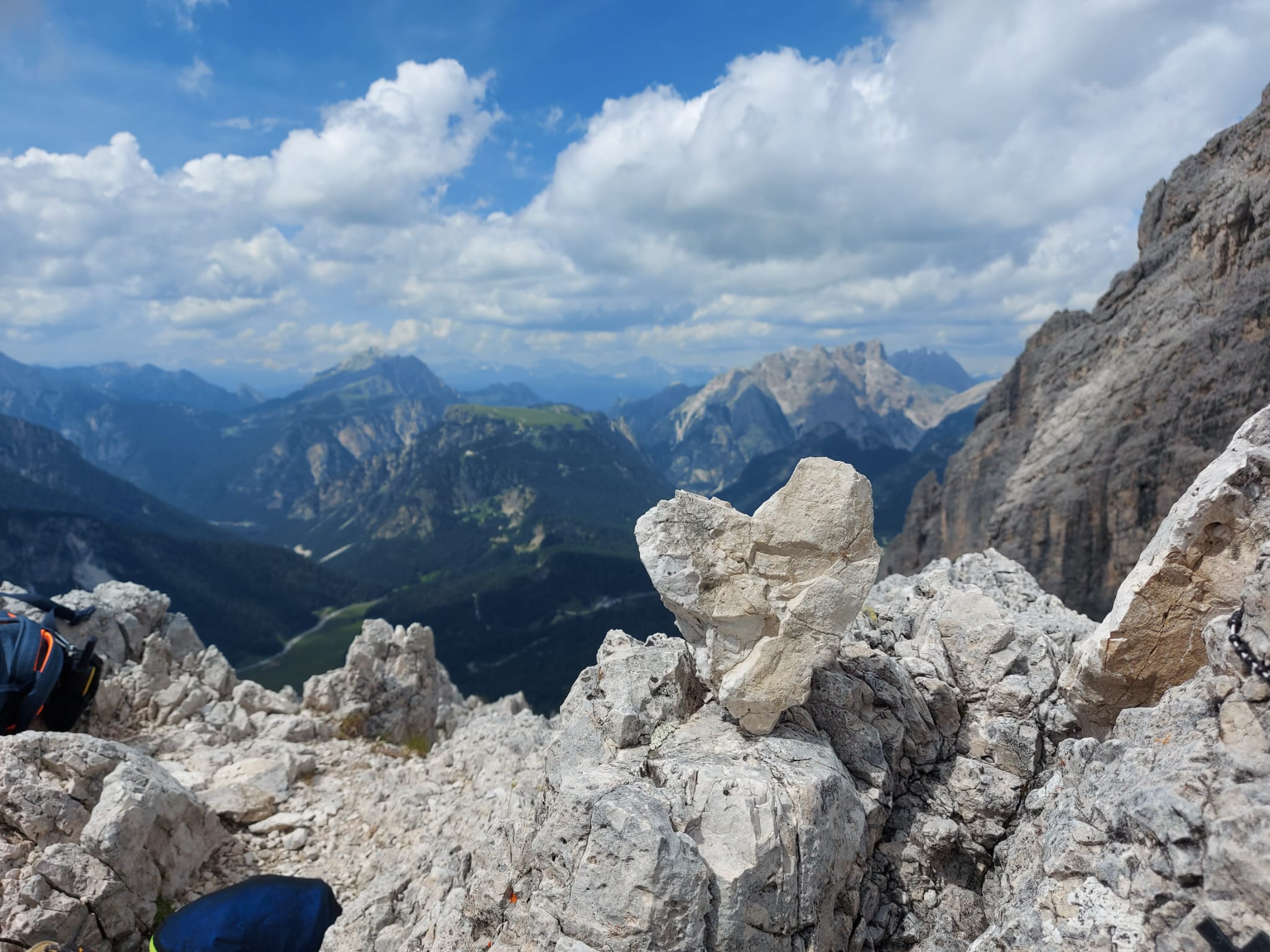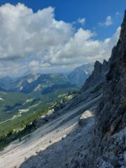 Seguirlo per circa 10 minuti fino a quando ci si trova in verticale sotto alla parete ovest della punta Col de Varda