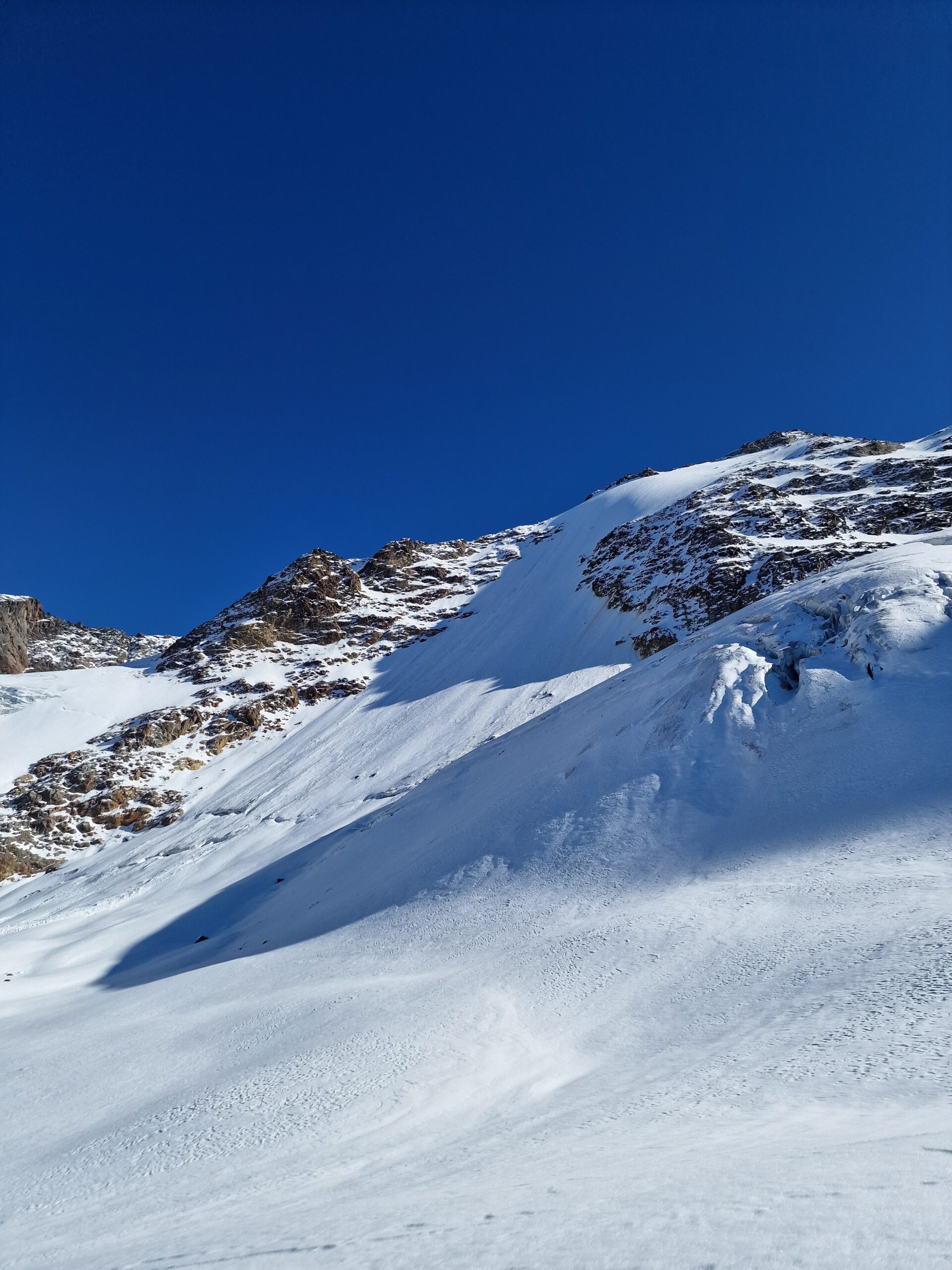 Una volta sul ghiacciaio si prosegue in direzione sud / sud-est puntando dritti verso la parete nord della Punta Cadini.