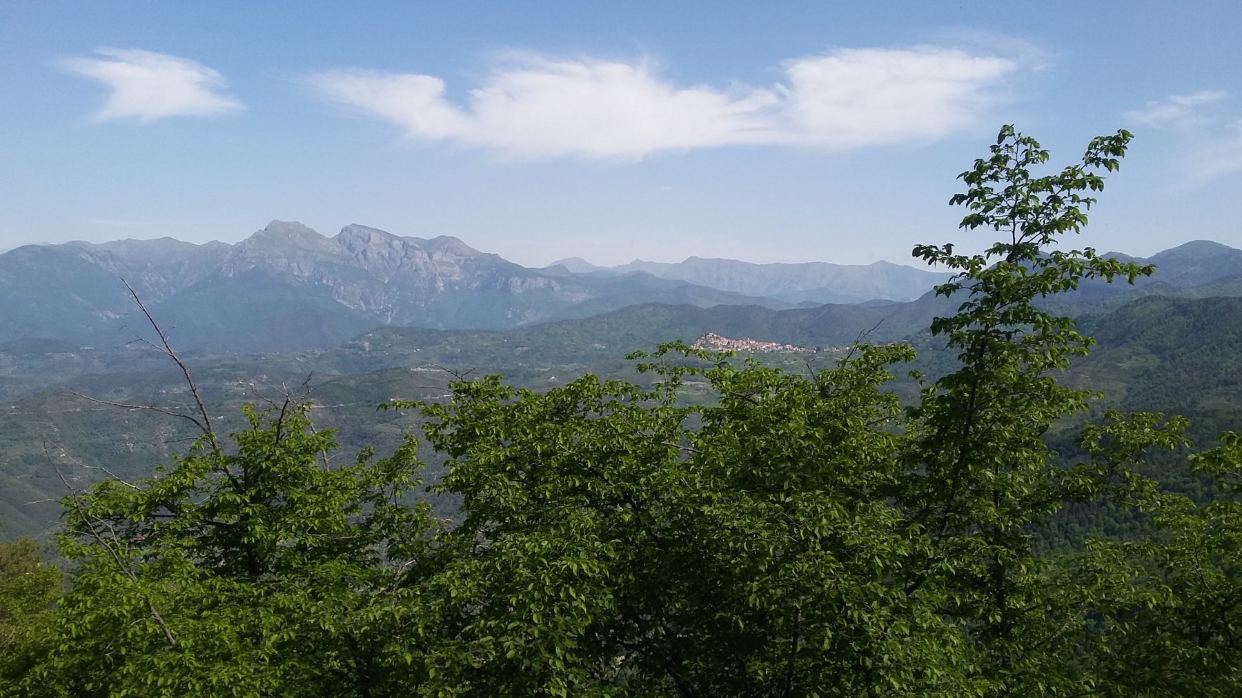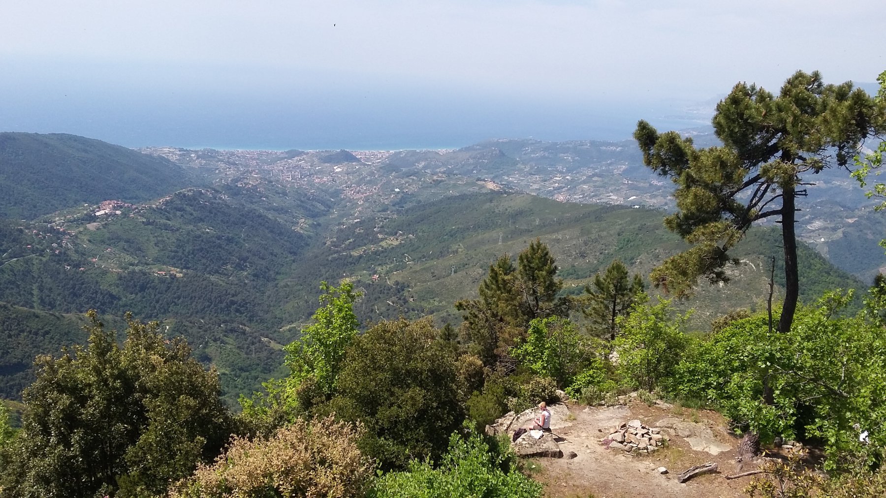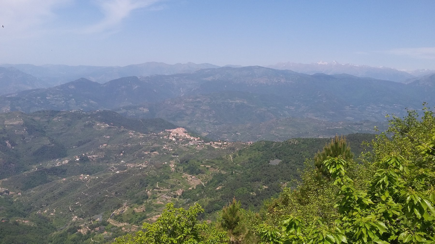 Bella vista dalla cima verso la Costa Azzurra, le cime innevate delle Marittime, il contrafforte Toraggio, Pietravecchia.