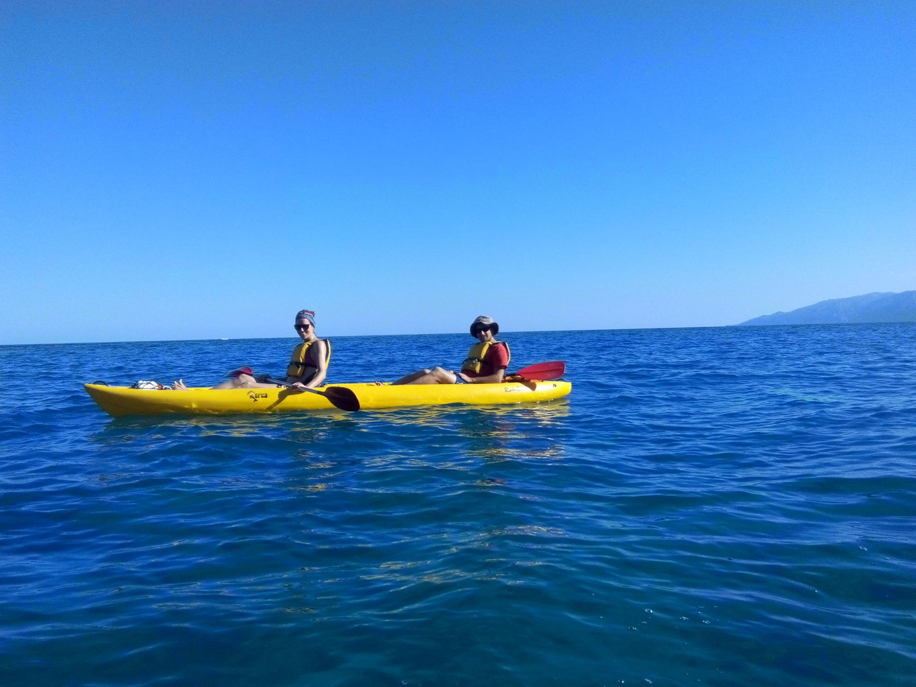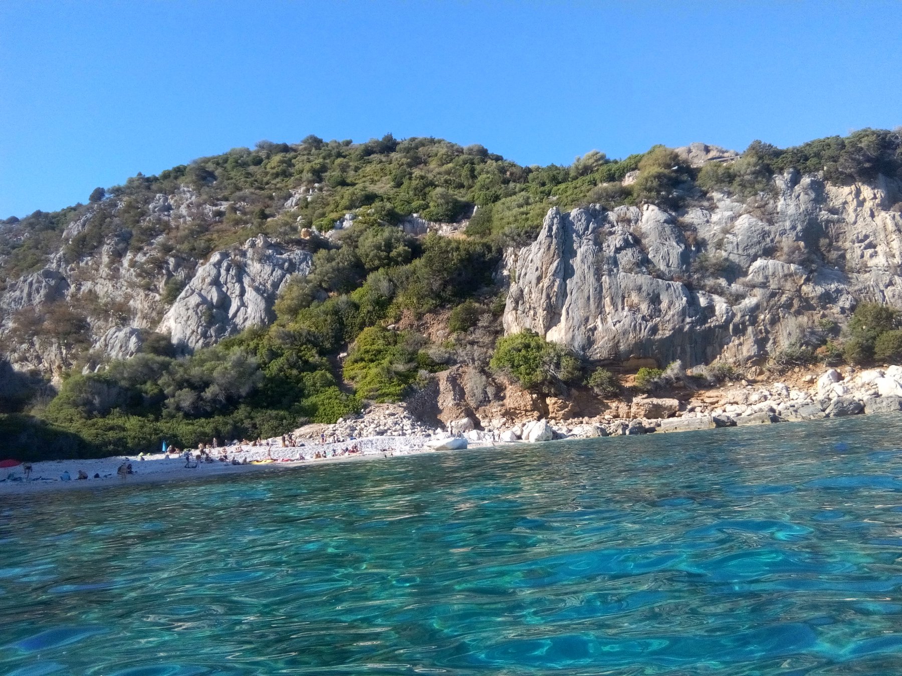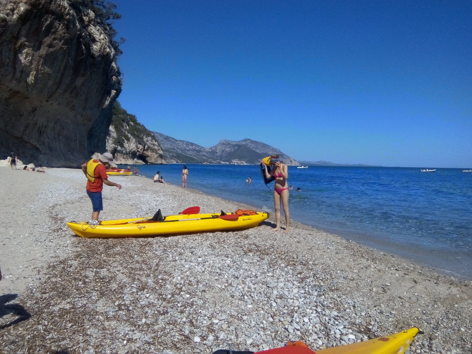 Dalla spiaggetta di Palmasera ci si dirige verso sud (destra), evitando alcuni affioramenti rocciosi, si costeggiano le grotte di sos Dorroles e sos Furones, la spiaggia di ziu Martine e Cala Fiuli. Arrivando dopo circa un’oretta alla grotta del Bue Marino (attracco dedicato alle canoe… informarsi). La visita della grotta Sud dura un’oretta al costo di 8 euro con guida, si percorre a piedi ed è lunga 1 Km, senza dubbio meritevole. La grotta nord è più stretta costa 10 euro per un’ora di visita. Per entrambe le grotte le visite sono ad orario fisso ( 11,30 sud/12,30 nord ottobre 2017) Si riparte verso Cala Luna sempre verso sud toccando varie calette e grottini che meritano una digressione con alcuni passaggi in canoa dentro le grotte.Si arriva così a Cala Luna dove si attracca sulla spiaggia con la caratteristica grotta. E’ presente un bar ristoro al parcheggio della strada che arriva a Cala Luna dalla terra. Il ritorno si effettua sulla rotta opposta puntando a nord. I tempi di percorrenza variano in base alle fermate e alla visita della Grotta del Bue Marino. Conviene prendersi la giornata intera e girovagare per calette e grottini vari.