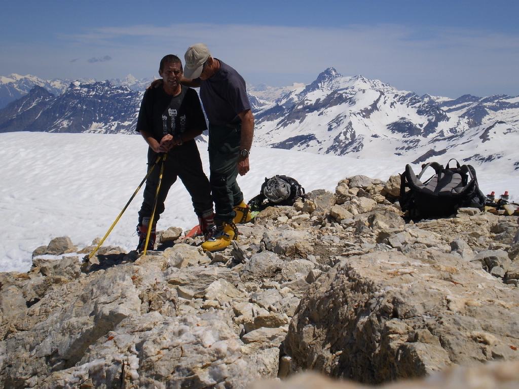 Percorso senza neve ,quindi con sci in spalla ,fino a 100 mt. dislivello sopra il Benevolo poi su traccia marcata fino in cima.Splendida giornata ,con qualche velatura in ambiente stupendo,sciabile la parte superiore per 700 metri di dislivello,sotto neve molto pesante ,ormai sono le ultime uscite con gli sci ma ne valeva la pena per l’amico Luciano che voleva provare l’attrezzatura nuova.