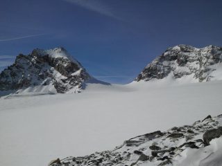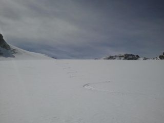 Splendida gita. Partito alle 6.30 circa da Thumel con -6 gradi. Si portano gli sci fino al ponte sotto al Benevolo. Da li neve continua. Salito aggirando il Truc Sant Elena su bella traccia. Passato sotto la parete della Granta Parei e salito sul bordo della morena. Da metà della morena ho tracciato il percorso fino in vetta, con circa 20-30 cm di neve fresca.Ogni tanto raffiche di vento forte. In vetta da solo alle 11.30, senza vento, raggiunto poco dopo da un gruppo di francesi. In discesa splendida neve dalla cima fino alla morena, poi neve dura, ma ben sciabile e poi firn fino al rifugio, dove ho pranzato. Dal rifugio, restando alti sulla destra, con qualche risalita, si riesce ad arrivare al ponte della Gran Vaudala. Gita lunga, ma con queste condizioni consigliatissima.